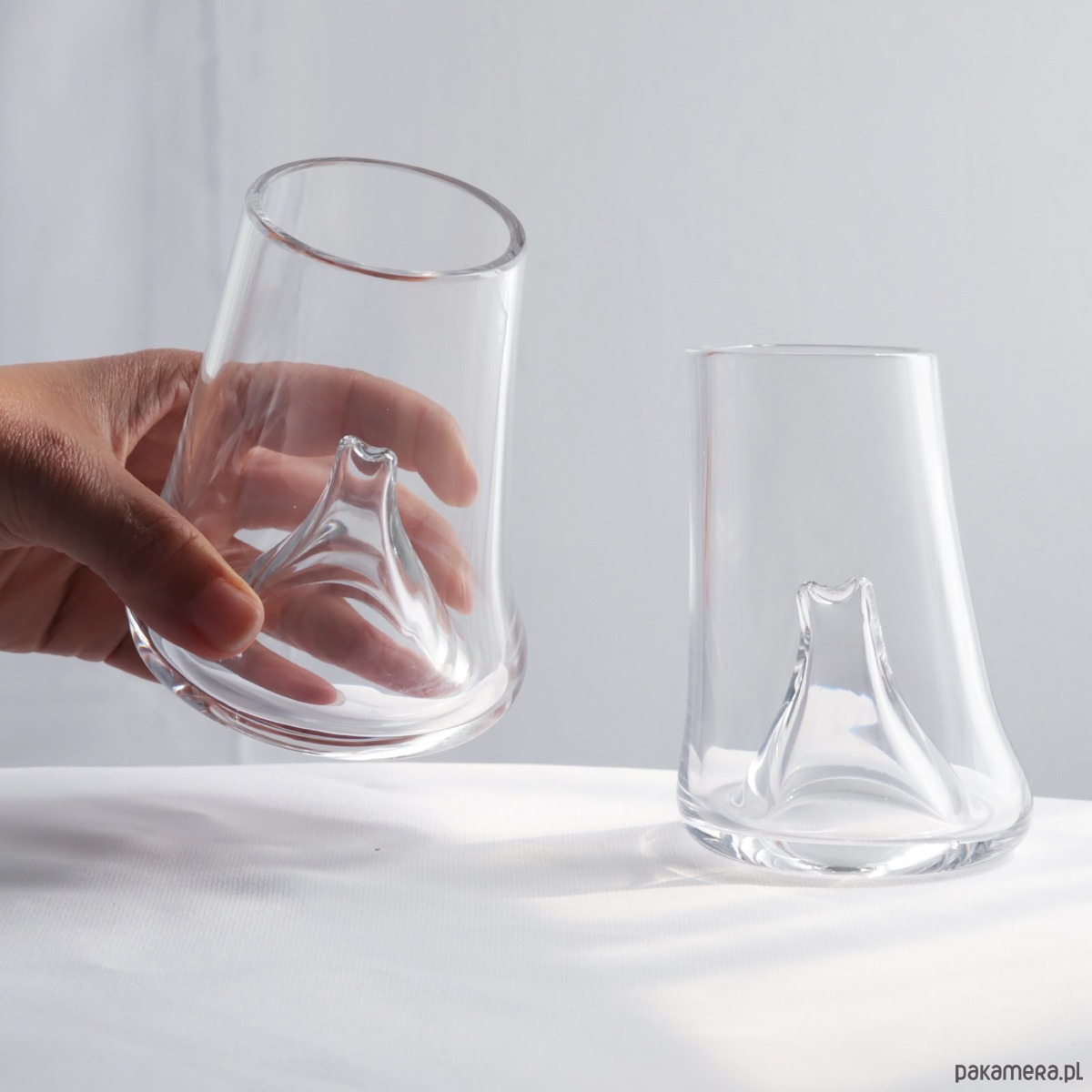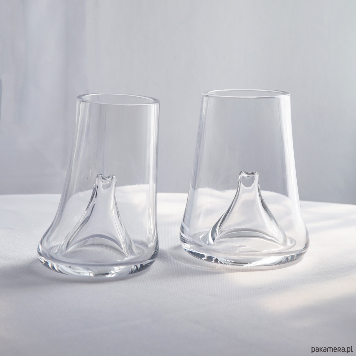 Szklanki " Loch Ness " to zabawna interpretacja słynnego potwora ze Szkocji. Szklanki powstały metodą wolnego formowania, co oznacza że do ich produkcji nie używałem drewnianej formy ! Szklanki ze względu na ręczne wytwarzanie różnią się od siebie, pod względem kształtu, wysokości i pojemności. Zwężający się kształt ku górze pozwala delektować się aromatycznymi trunkami.