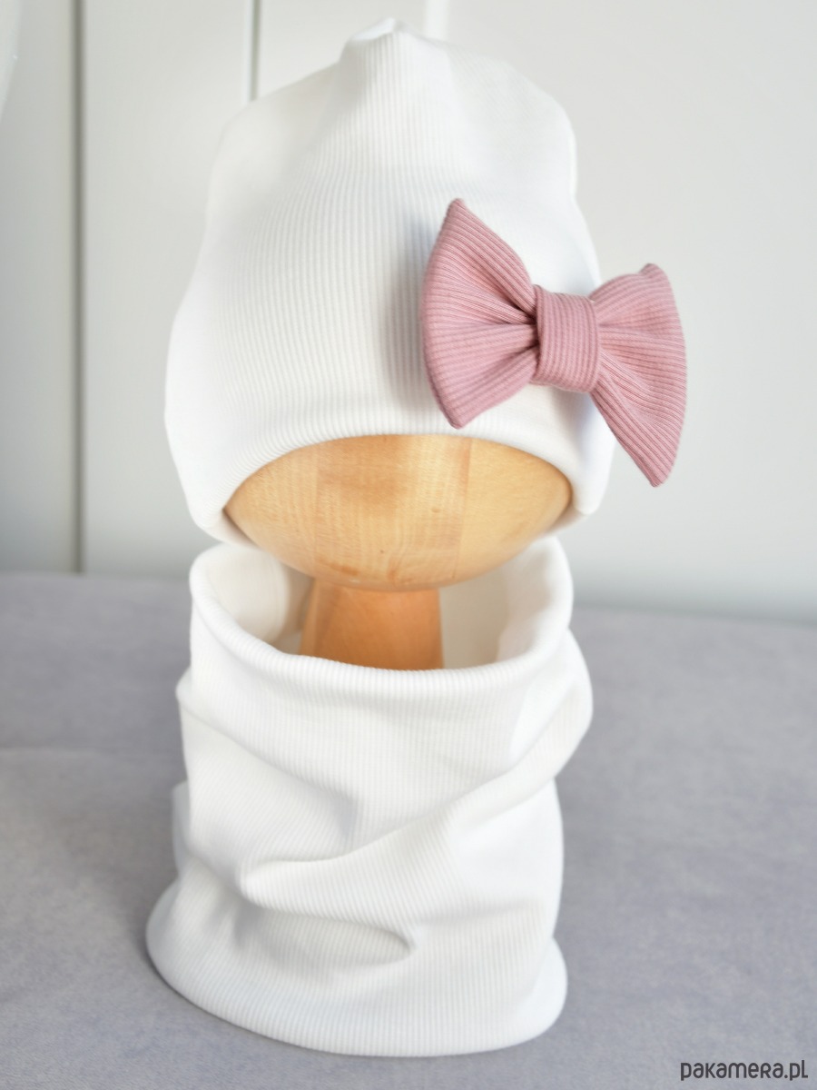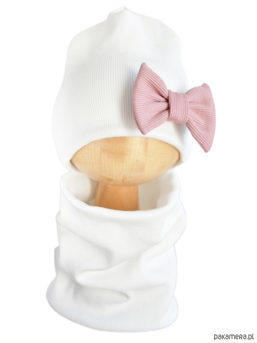 Komplet dziecięcy czapka z kokardą i komin ecru