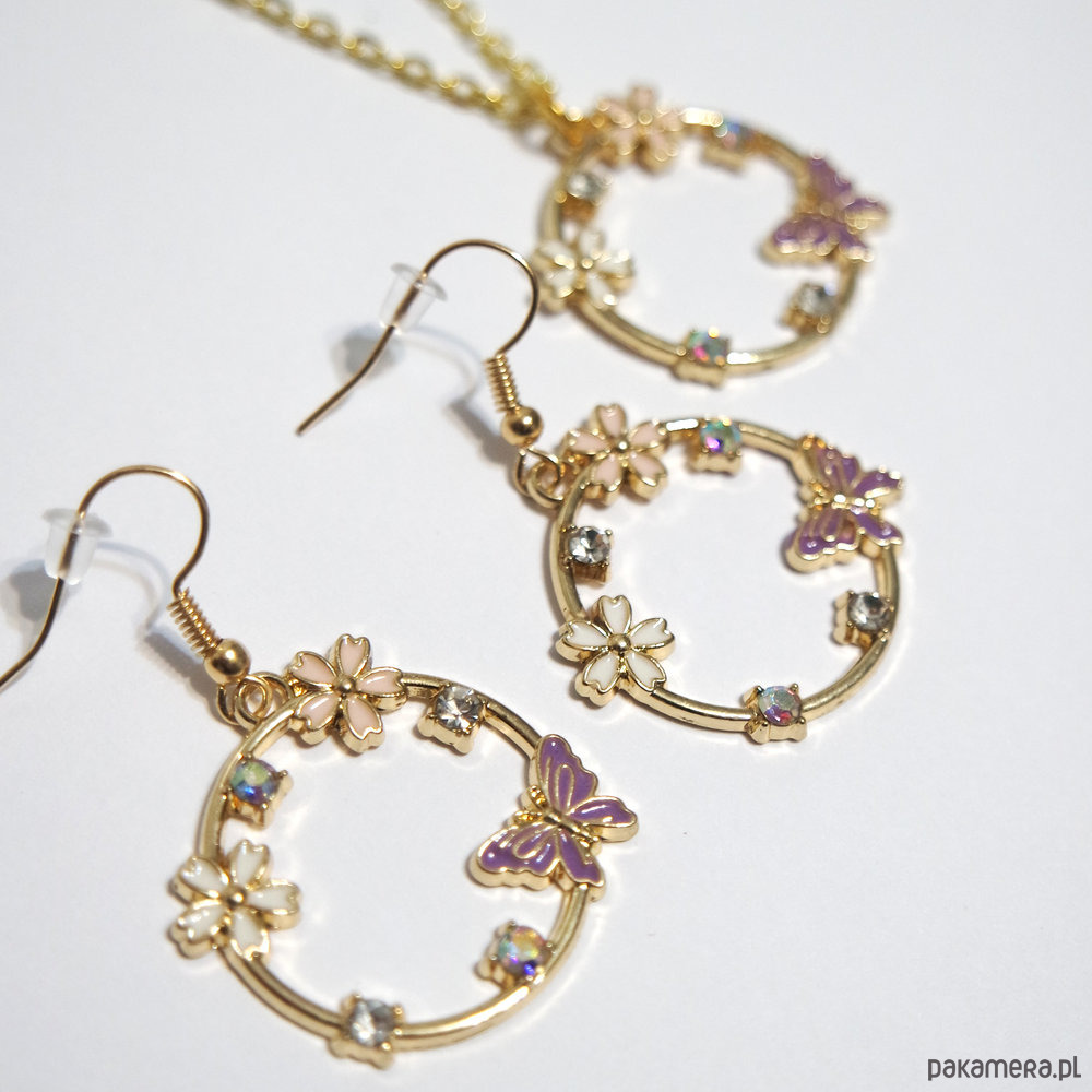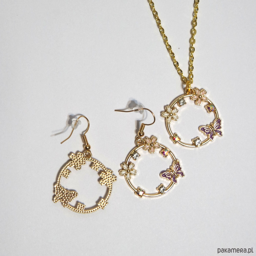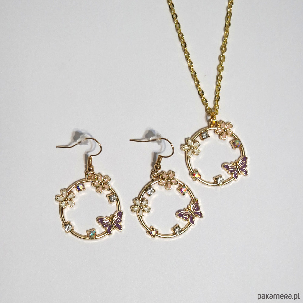 Kolczyki i naszyjnik z pięknymi zawieszkami emaliowanymi.