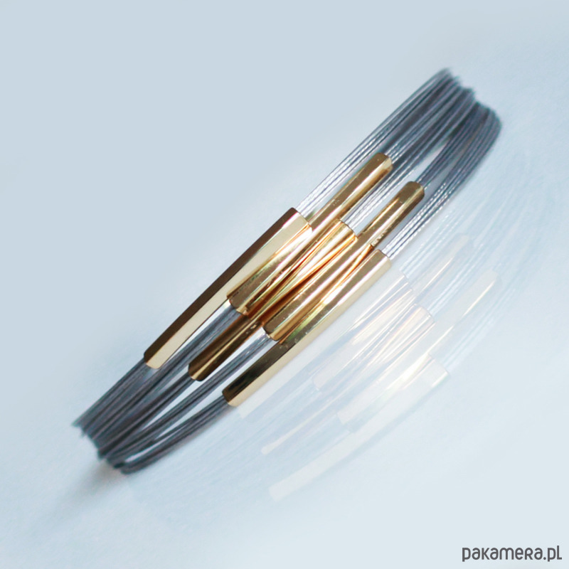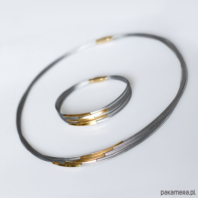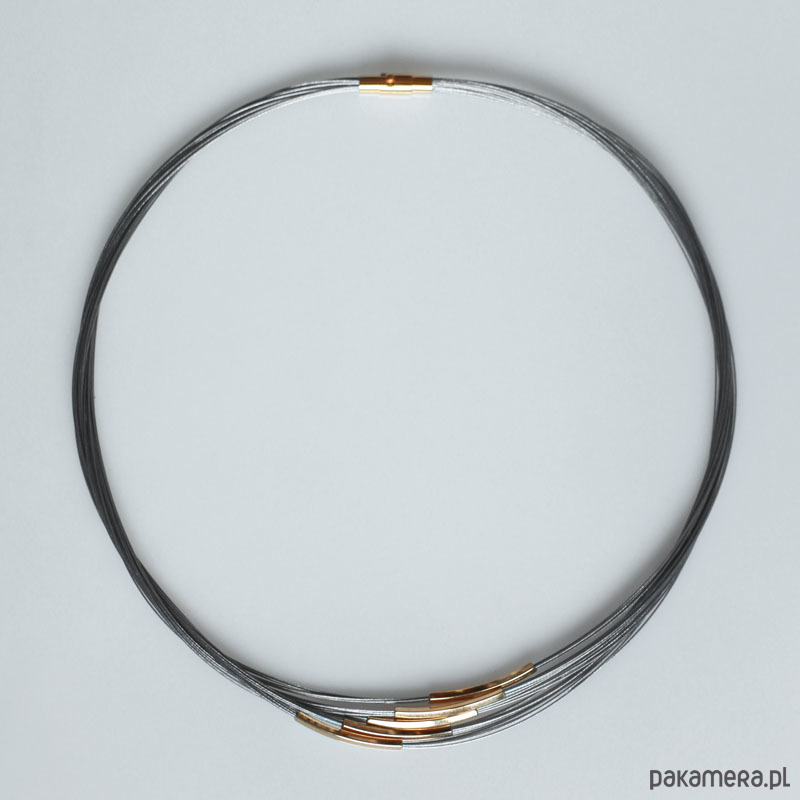 Wykonany na bazie stalowej linki jubilerskiej pokrytej nylonem.