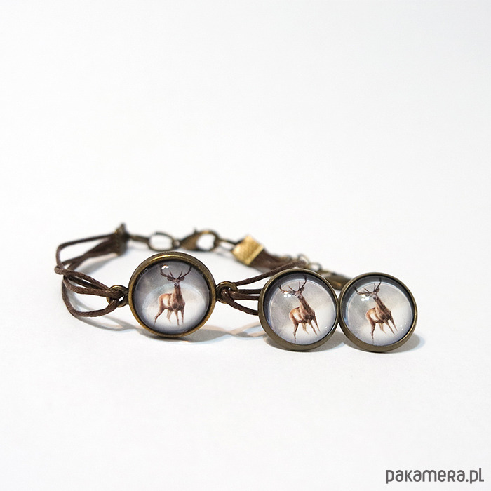Komplet - Jeleń 2 - kolczyki, bransoletka
