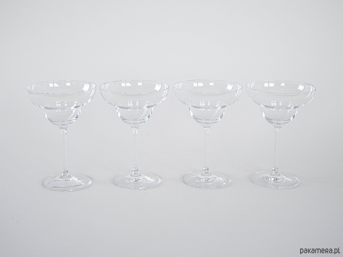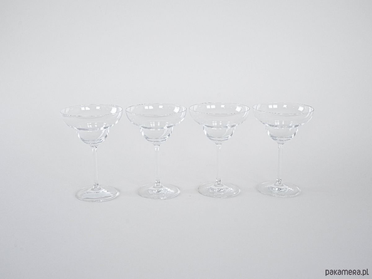 Kieliszki do margarity vintage, komplet 4 sztuki. Eleganckie szkło o szerokiej czaszy i smukłej nóżce, idealne do serwowania klasycznych margarit oraz innych koktajli podawanych na zimno. Prosty, ponadczasowy design sprawia, że doskonale wpasują się zarówno w nowoczesne, jak i retro aranżacje stołu. Stylowe, praktyczne i kolekcjonerskie – idealne na spotkania w gronie przyjaciół.