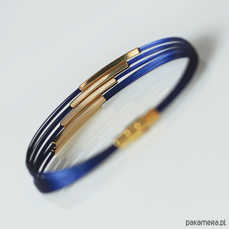 Wykonany na bazie kobaltowej linki jubilerskiej.