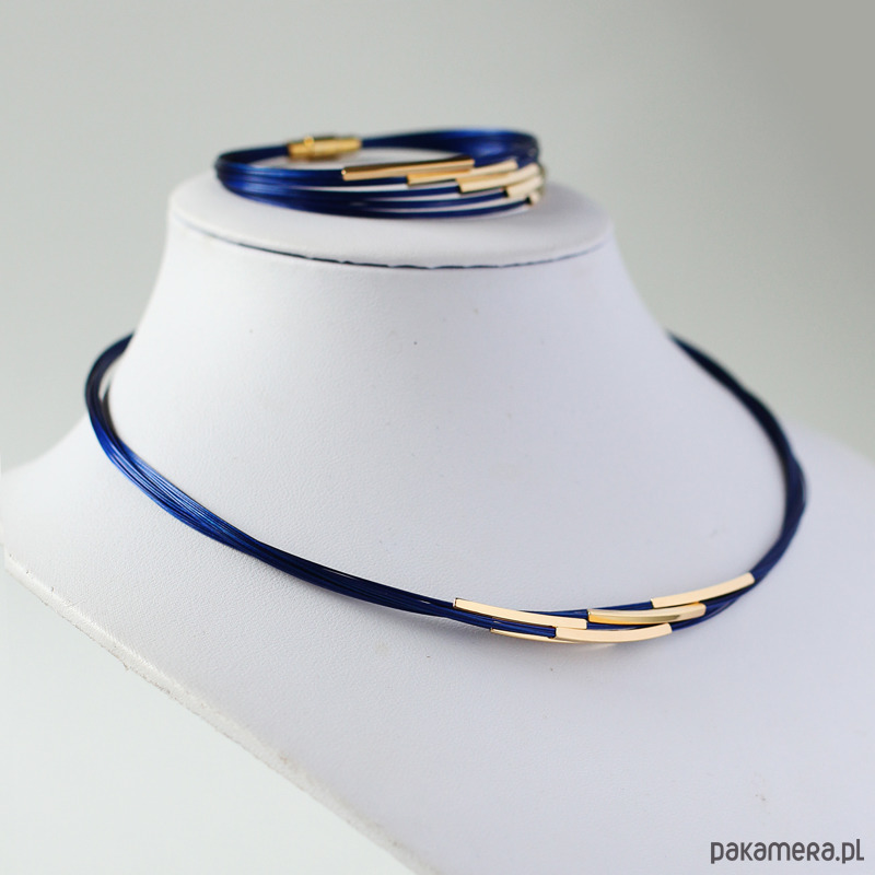 Wykonany na bazie kobaltowej linki jubilerskiej.