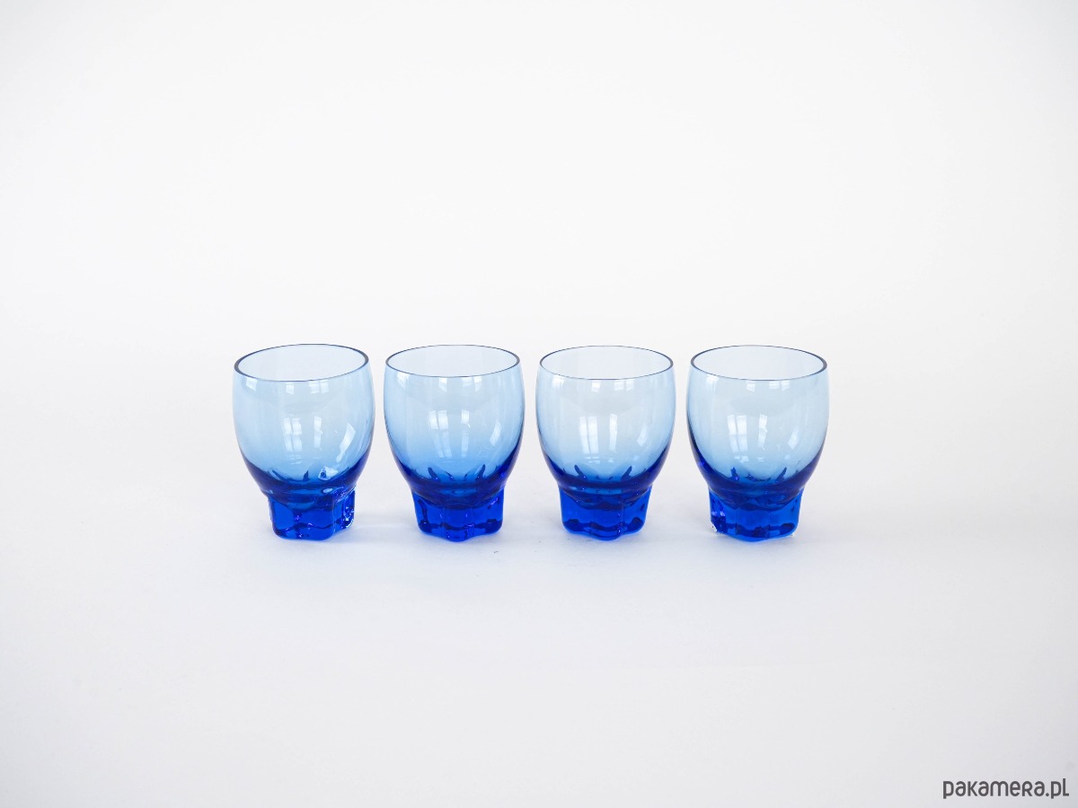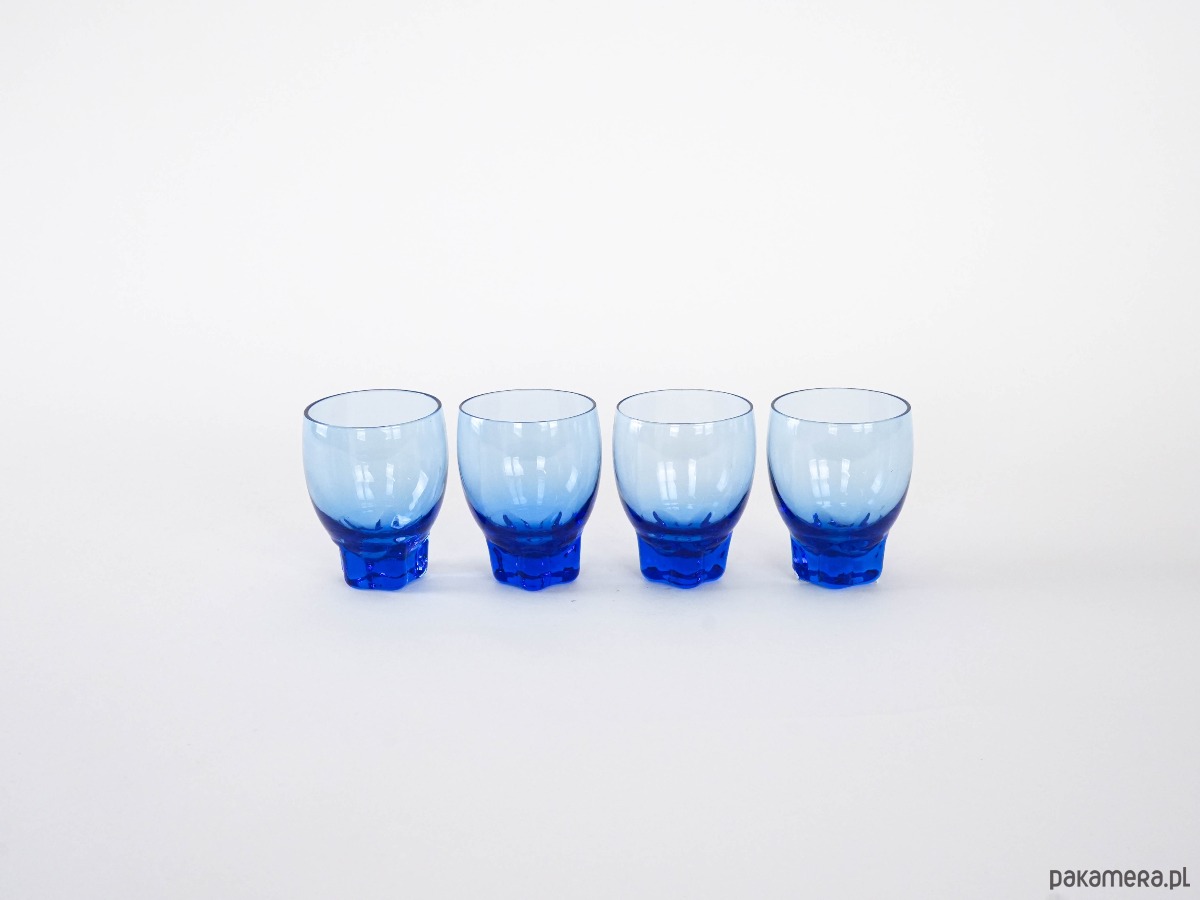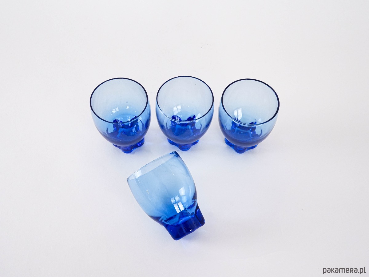 Komplet kobaltowych szklanek, duński design, lata 70, produkcja: Dania