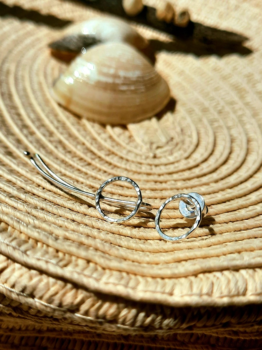 Komplet kolczyk - nausznica KOŁO ze srebra