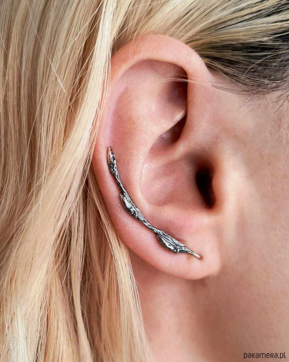 Proces zakładania jest taki sam, jak przy tradycyjnym kolczyku. Należy go potem ułożyć na płatku ucha, by piął się do góry. Wygląda obłędnie!
