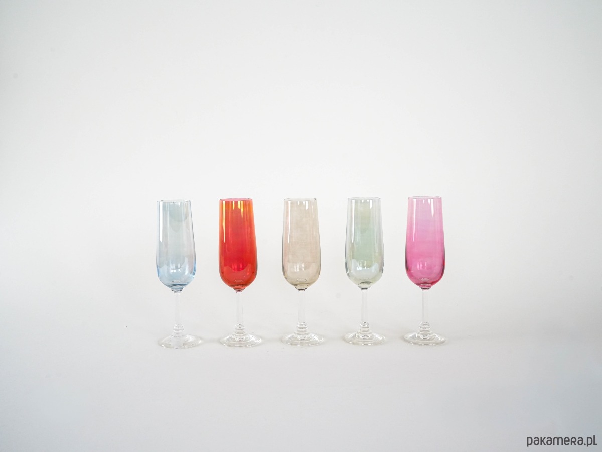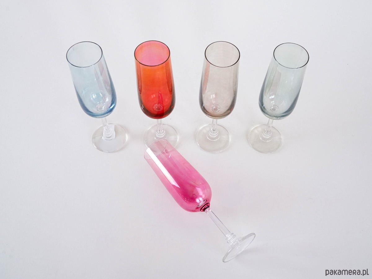 Komplet kolorowych kieliszków do wina, lata 60, produkcja: Czechosłowacja