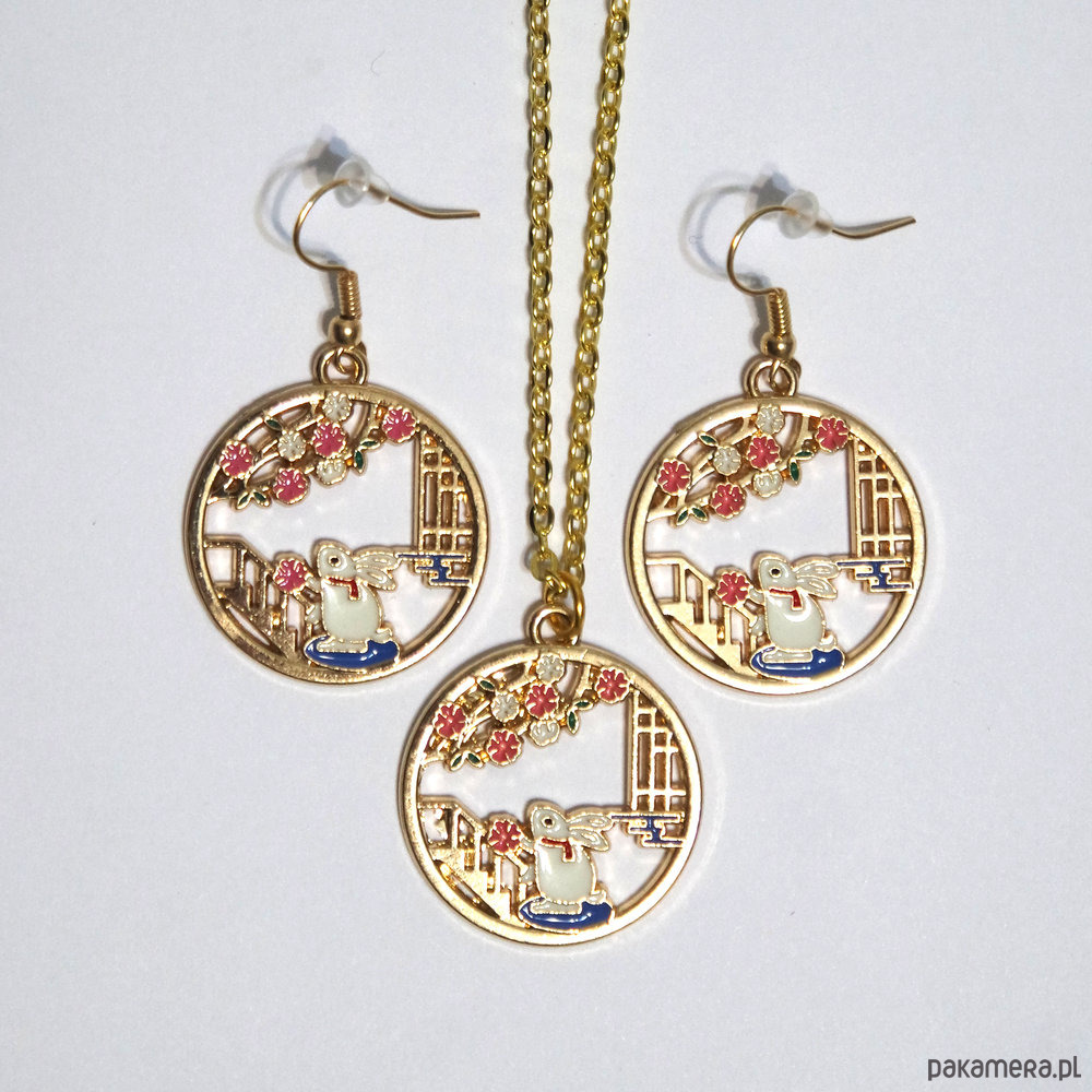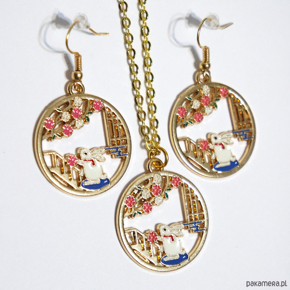 Komplet - Króliczek w ogrodzie - kolczyki i naszyjnik