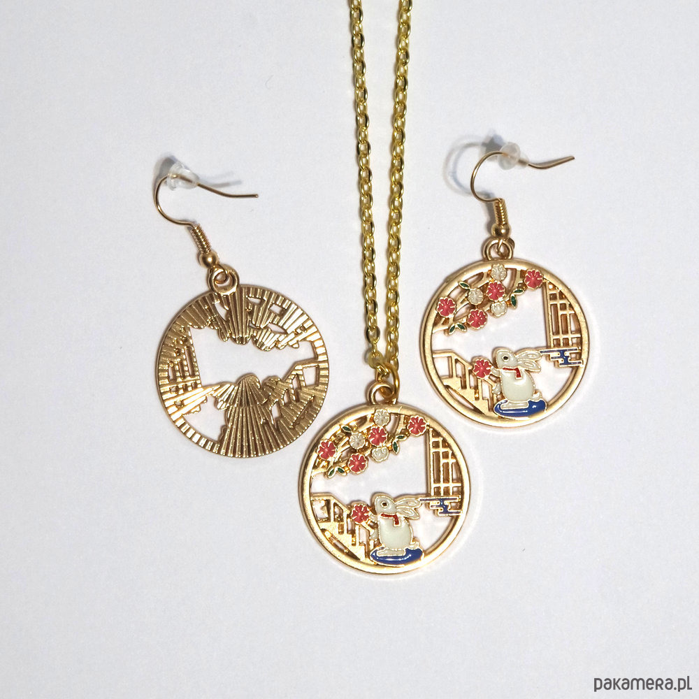 Kolczyki i naszyjnik z pięknymi zawieszkami emaliowanymi.