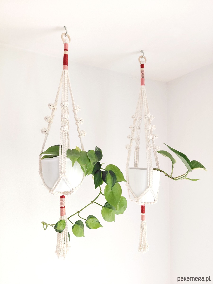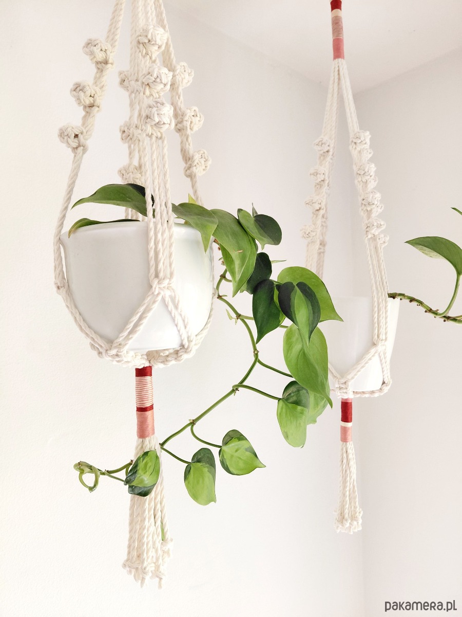Komplet kwietników z makramy