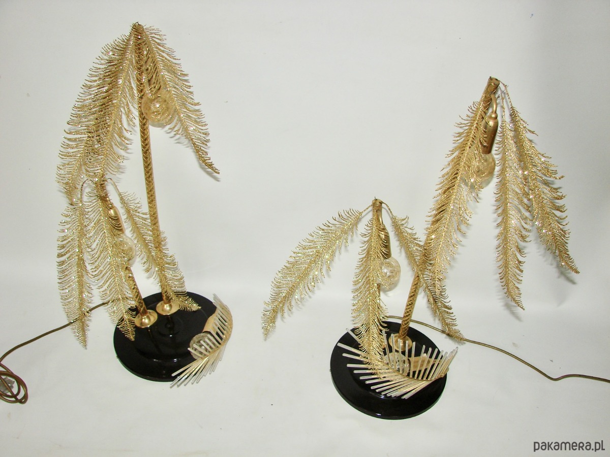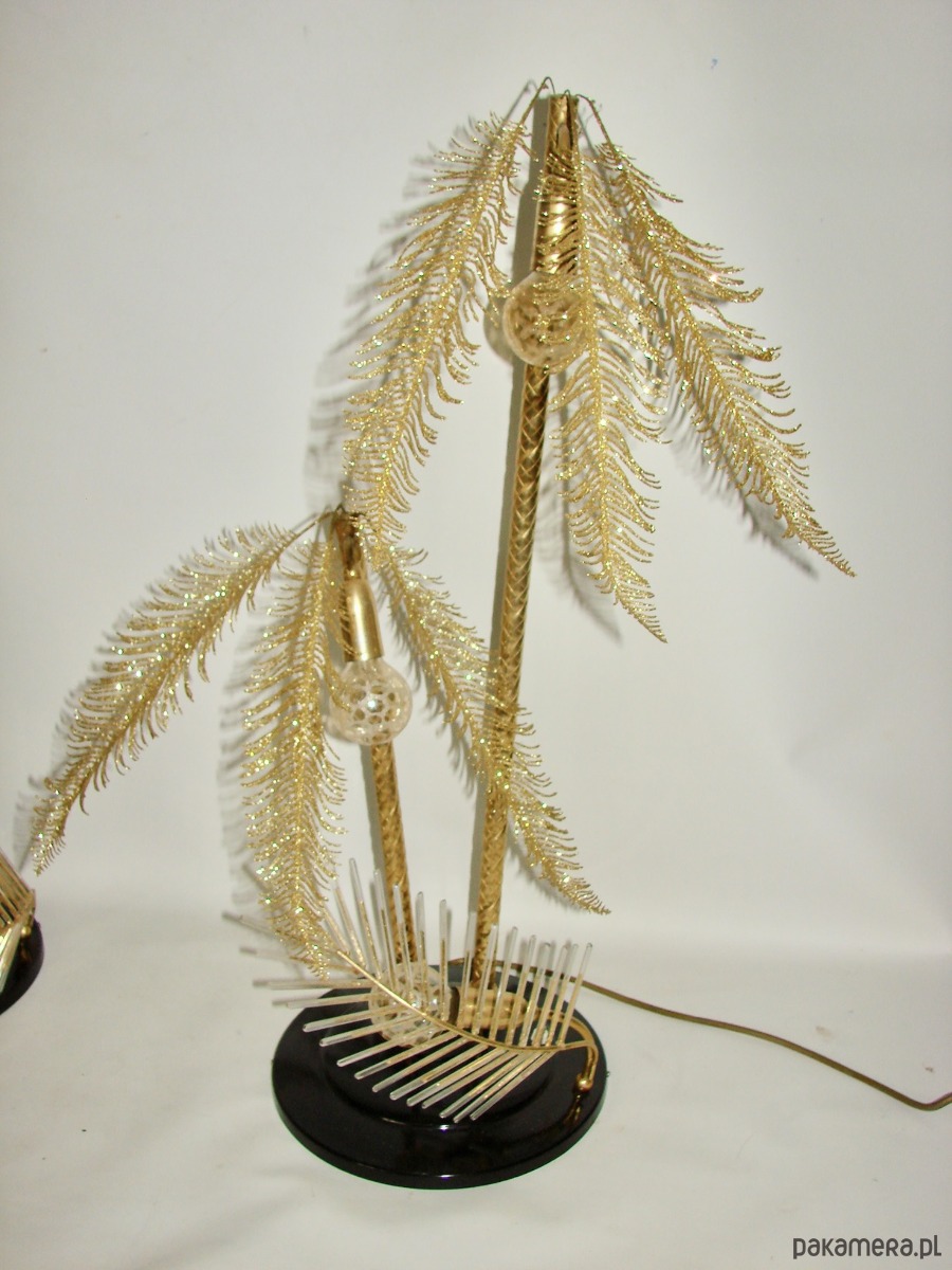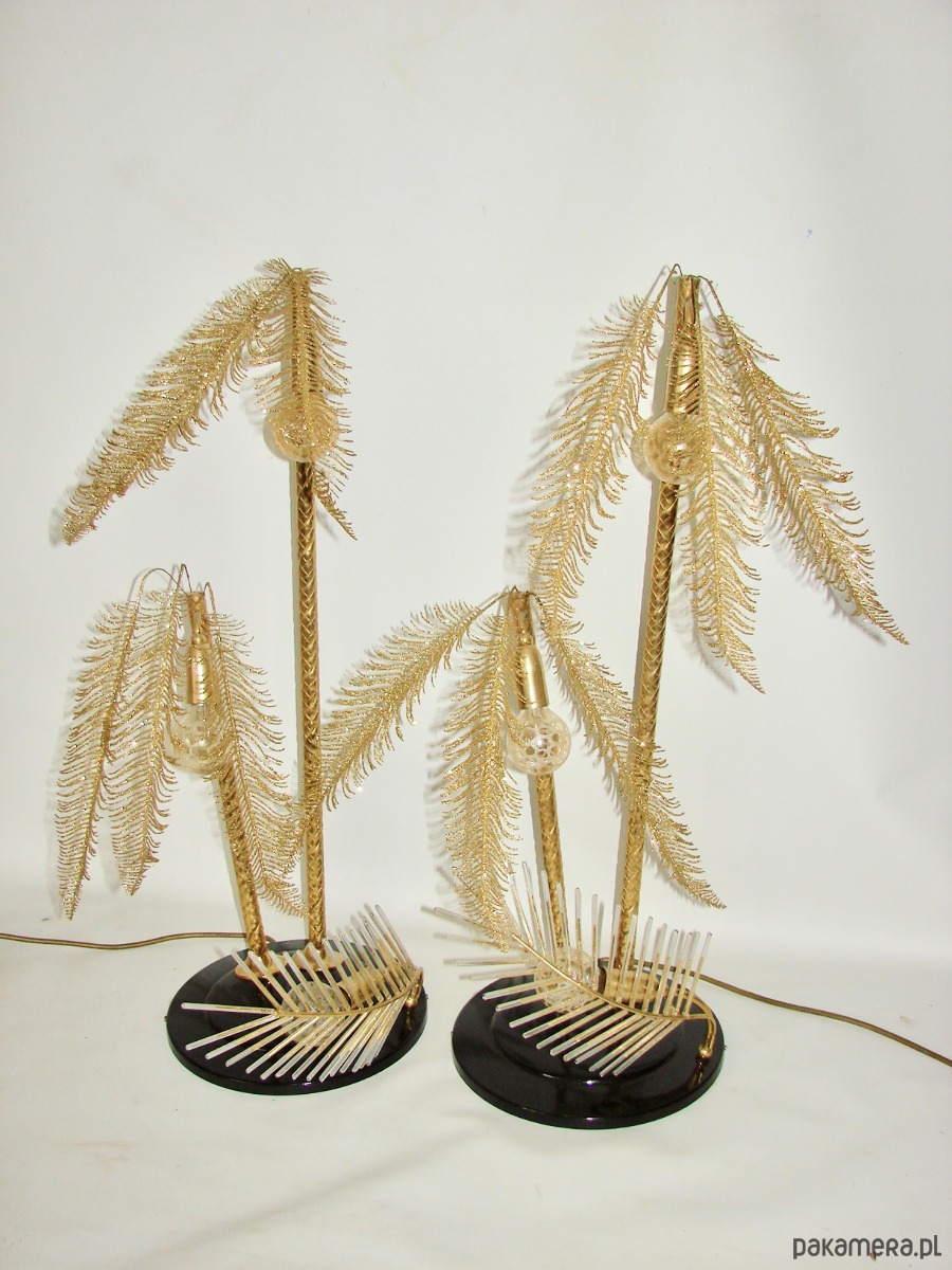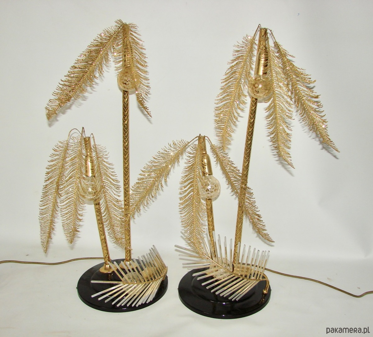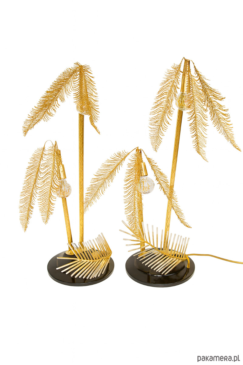 Komplet dwóch dekoracyjnych lamp nocnych w stylu Hollywood Regency, inspirowanym luksusem i egzotyką lat 60–80. Formy przypominające palmy nadają im wyjątkowy charakter i czynią je efektowną ozdobą wnętrza.