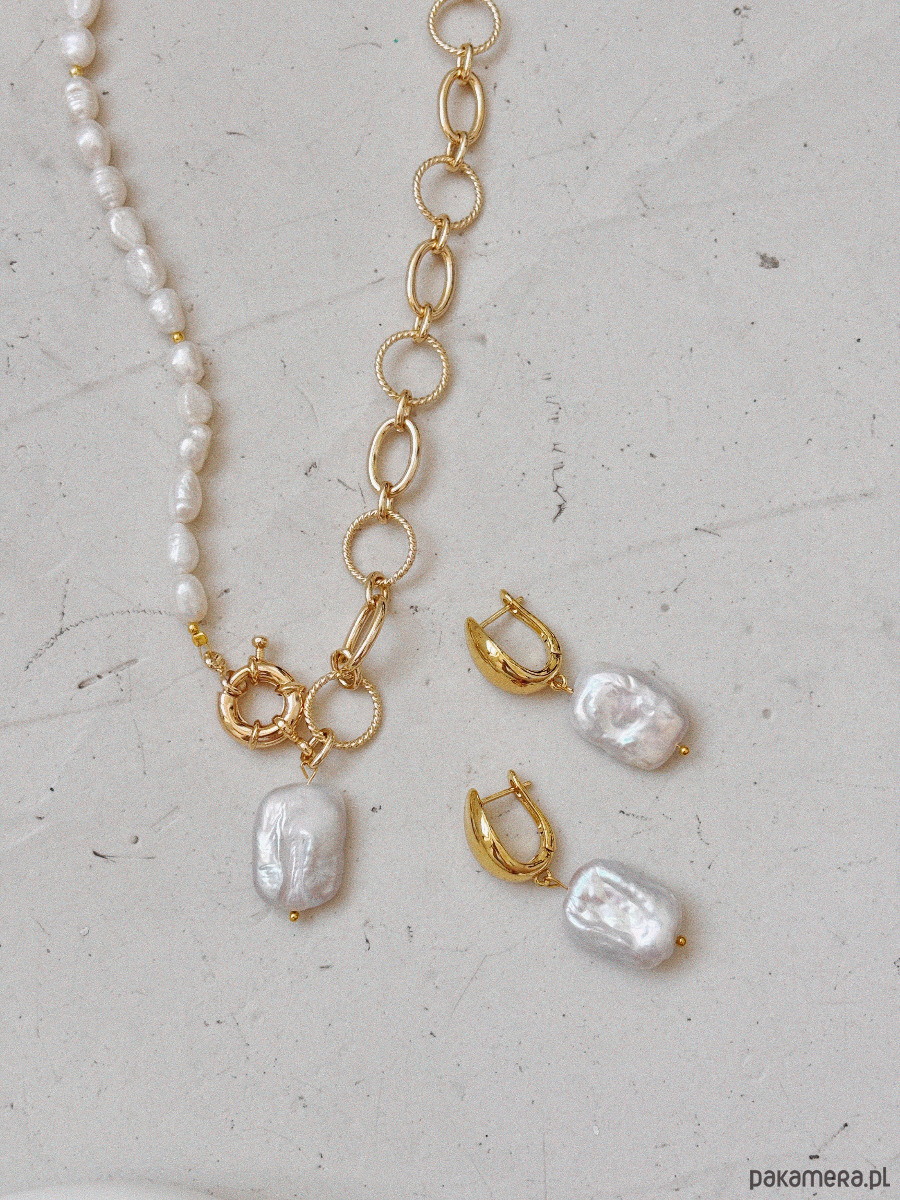 - Materiał: złoto 18k, stal chirurgiczna, perły, mosiądz