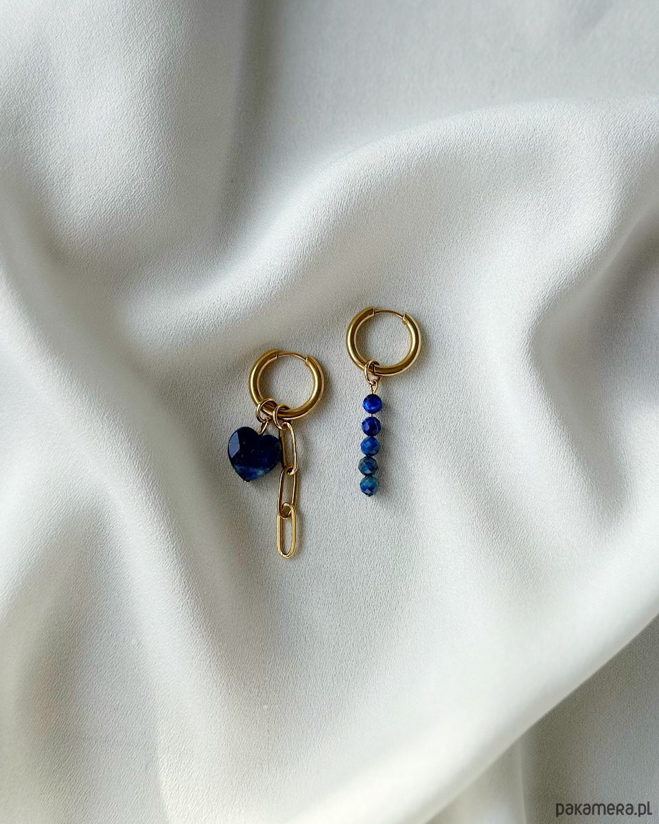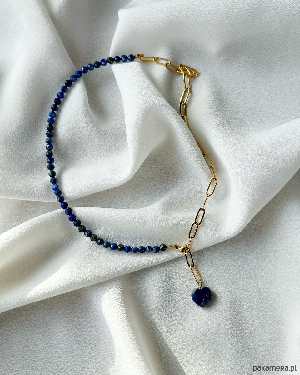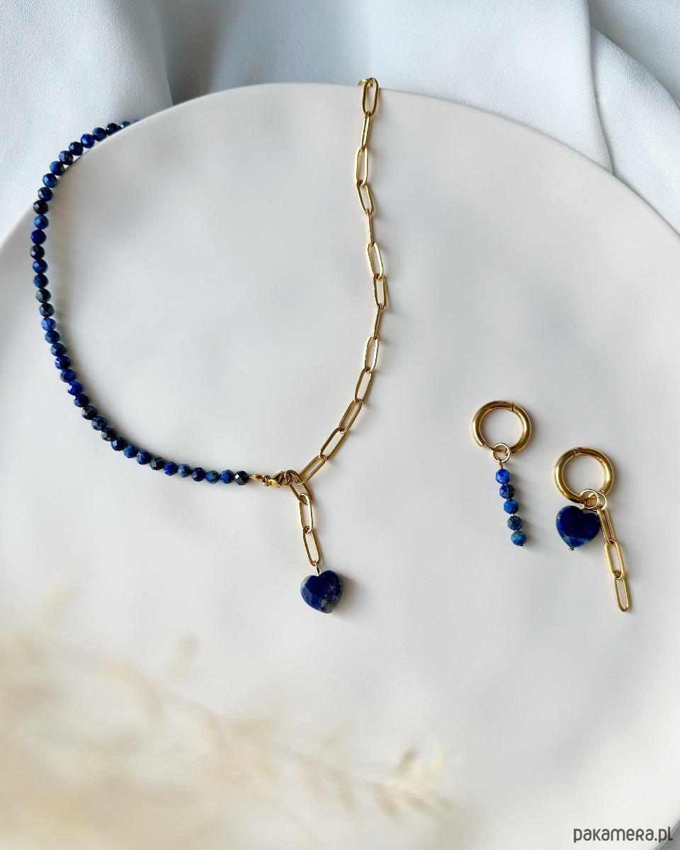 Komplet naszyjnik z kolczykami z przepięknego kamienia w głębokim niebieskim odcieniu - lapis lazuli. Naszyjnik można regulować z przodu i nosić na dwa sposoby. Zawieszka w kształcie serca wykonana jest również z lapisu💙 Kolczyki koła idealnie dopełnią całą stylizację!