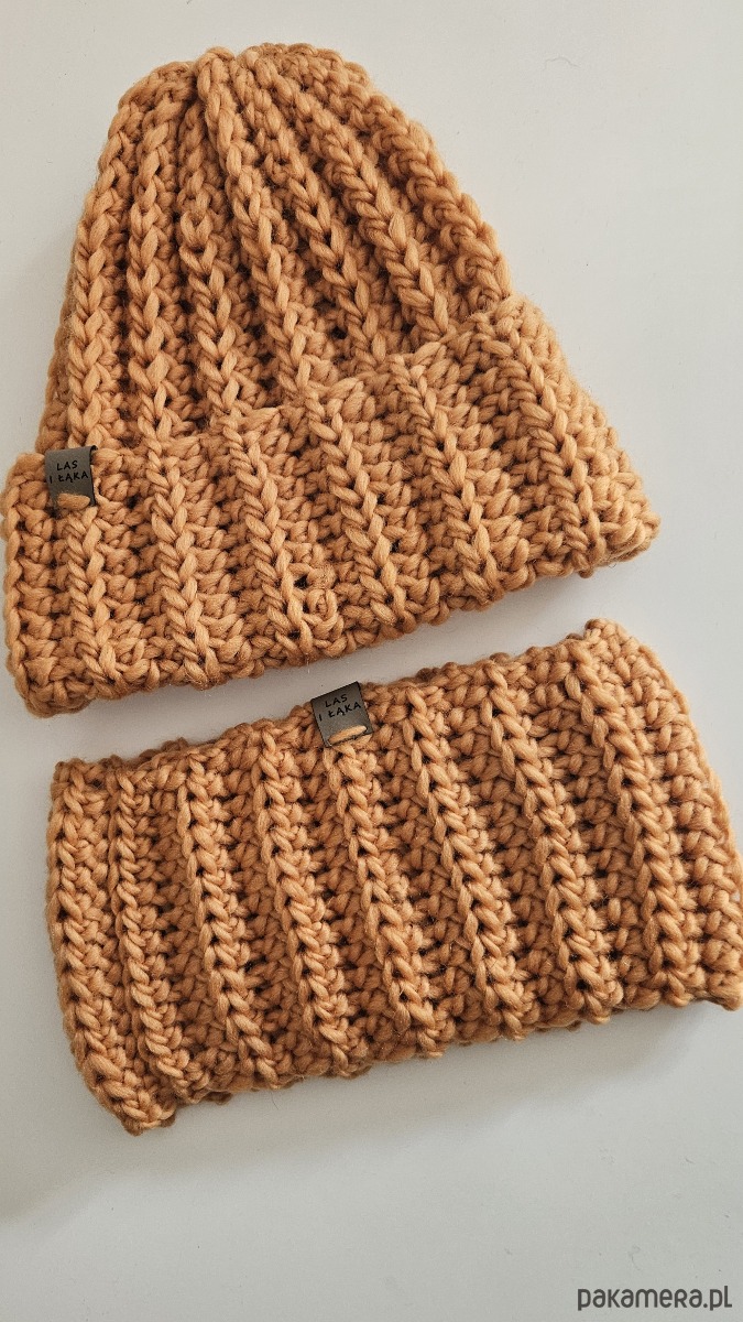 Ręcznie robiony komplet z wełny — czapka i golf, które otulą Cię miękkim ciepłem w chłodne dni. Gruby splot dodaje im charakteru i sprawia, że są nie tylko praktyczne, ale też stylowe. Czapka świetnie dopasowuje się do głowy, a golf możesz nosić luźno lub otulony bliżej szyi. Idealny zestaw dla miłośników naturalnych materiałów, prostoty i ręcznego rzemiosła.