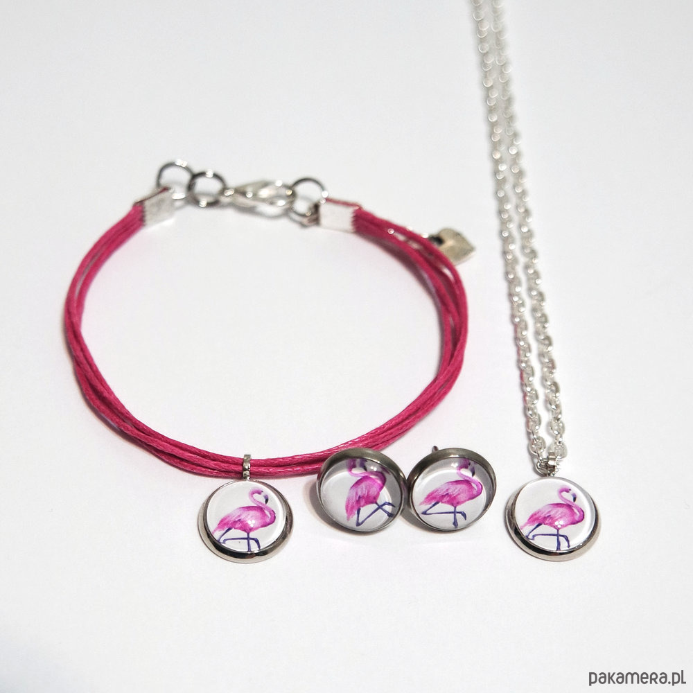 Komplet mini - Flaming - kolczyki, bransoletka, naszyjnik