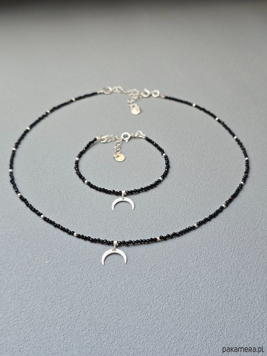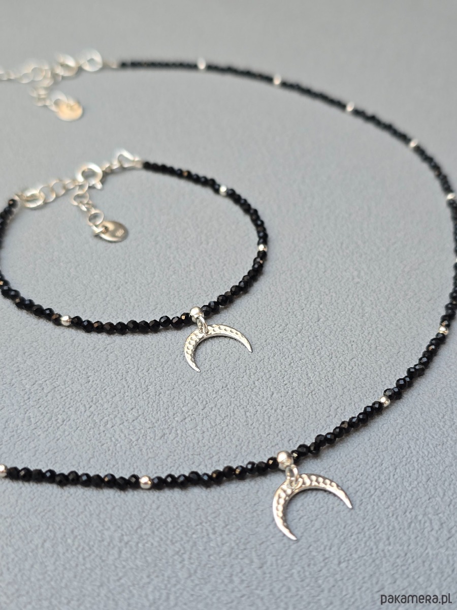 Delikatny komplet z maleńkich czarnych turmalinów.