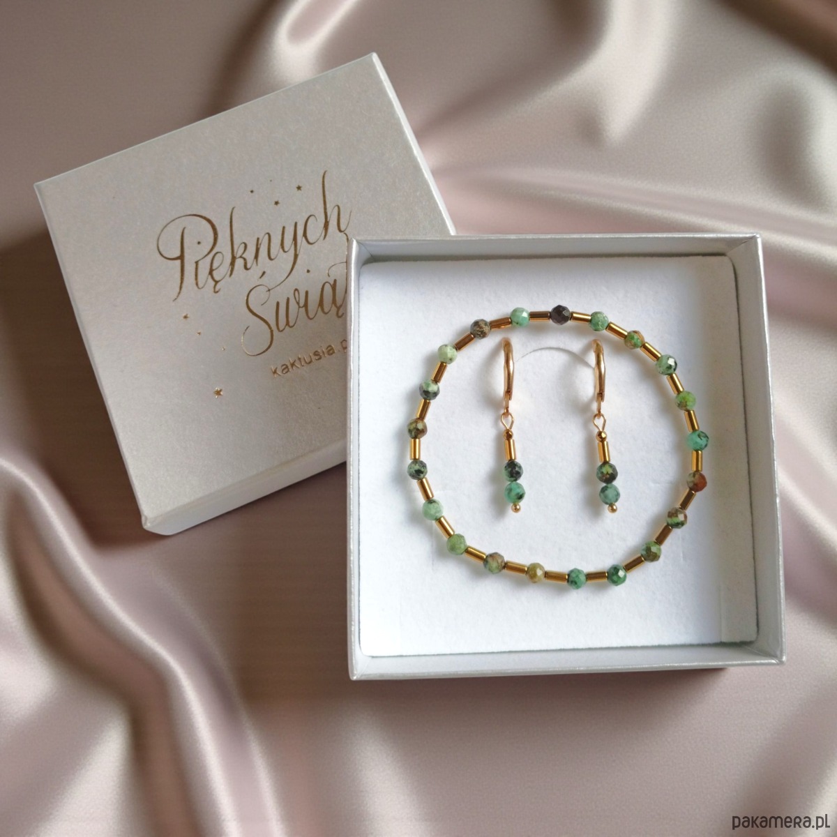 KOMPLET na prezent : turkus afrykański & hematyt złoty