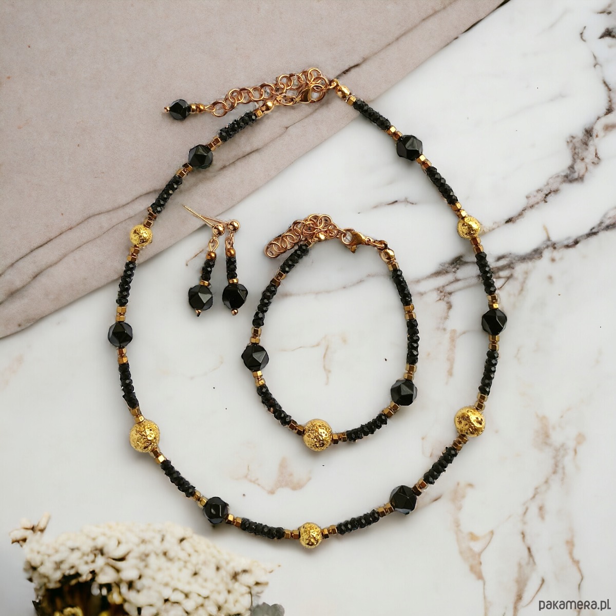 - Skład kompletu: naszyjnik + kolczyki + bransoletka