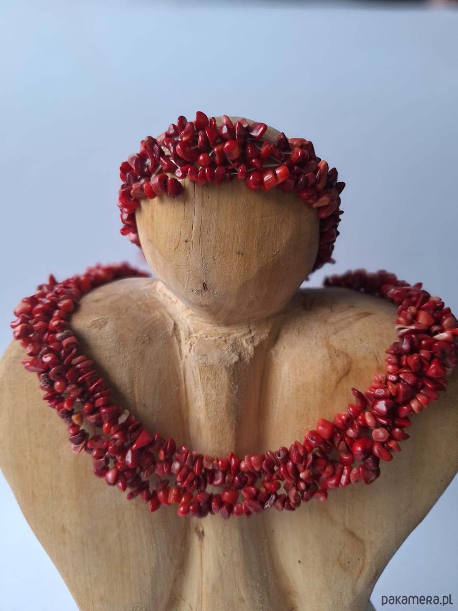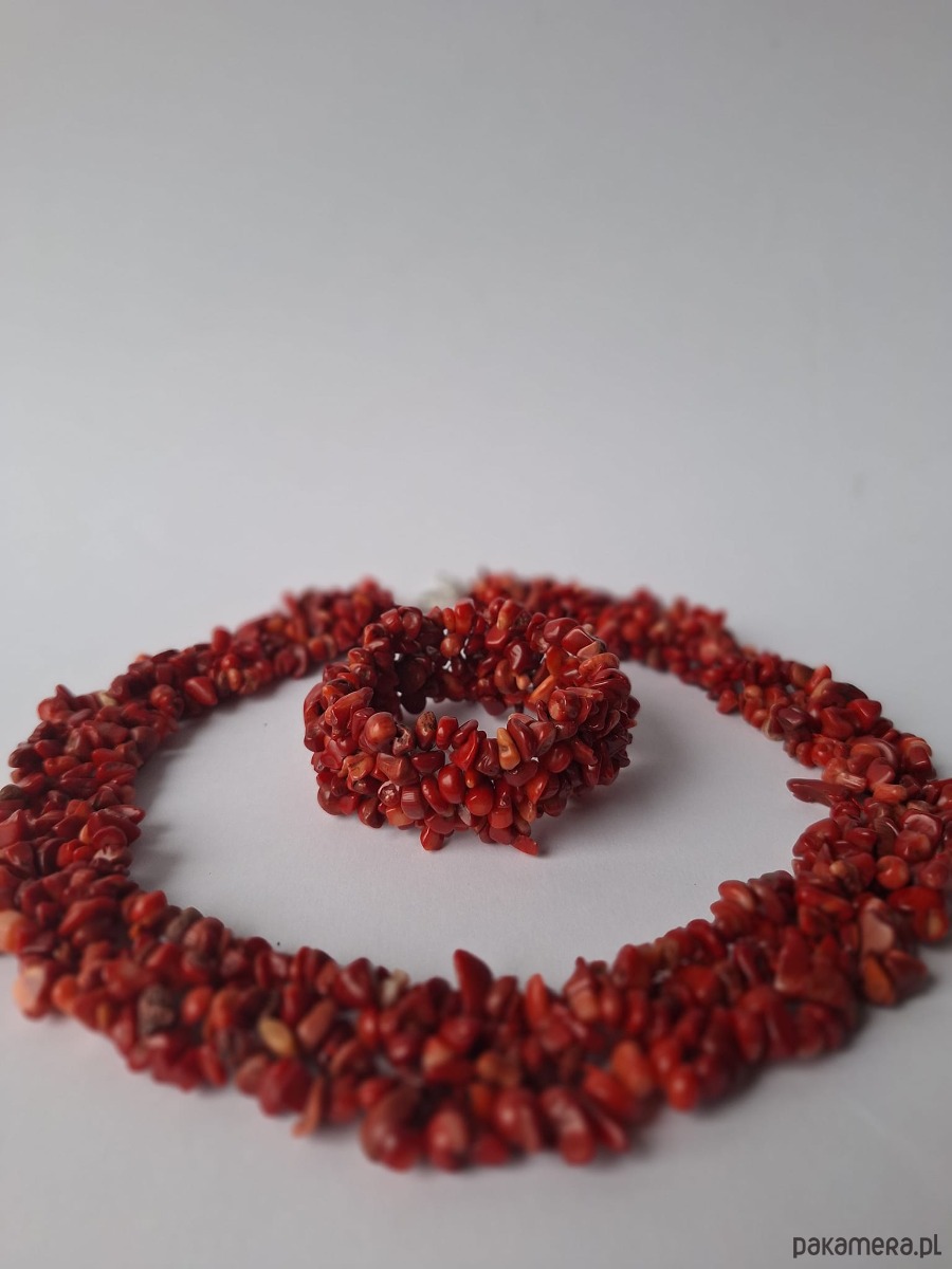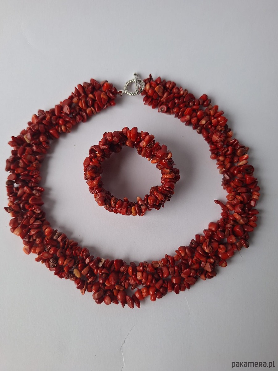 Komplet naszyjnik , bransoletka z korala czerwonego