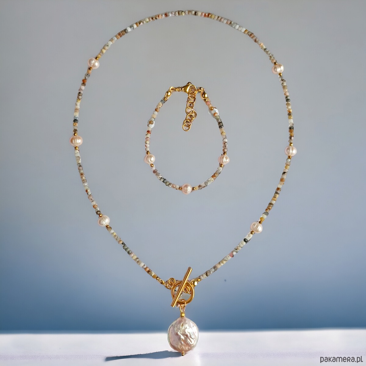 KOMPLET : naszyjnik i bransoletka OPAL peruwiański i PERŁY