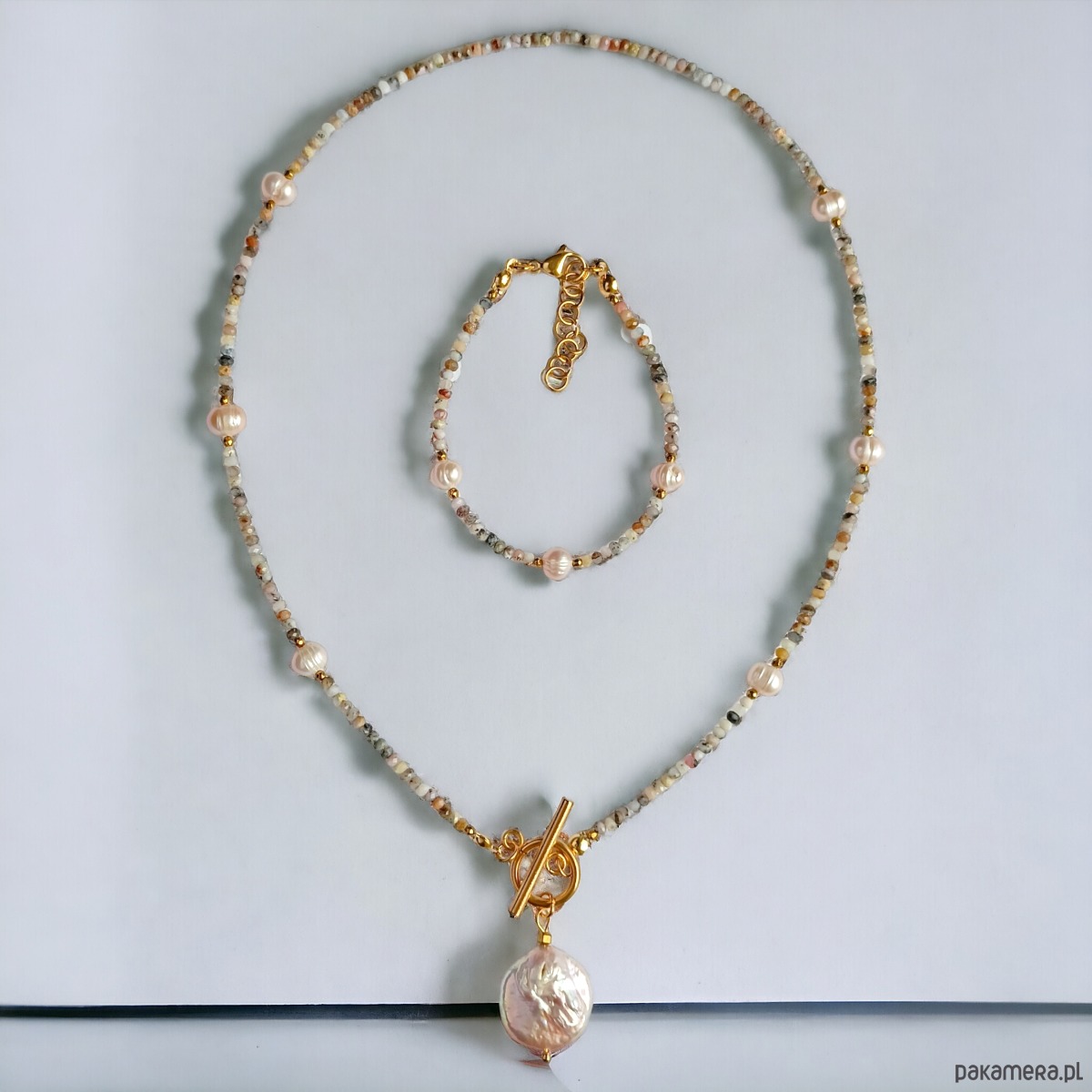 KOMPLET : naszyjnik i bransoletka OPAL peruwiański & PERŁY