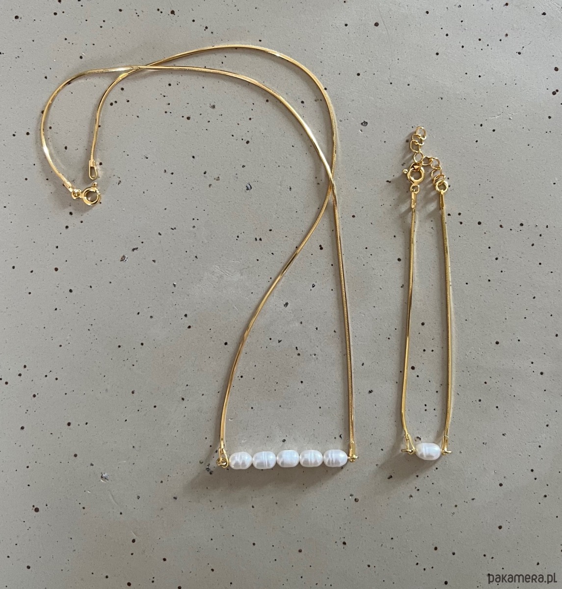 Komplet naszyjnik i bransoletka wykonane ze srebra próby 925 złocone 24-karatowym złotem.