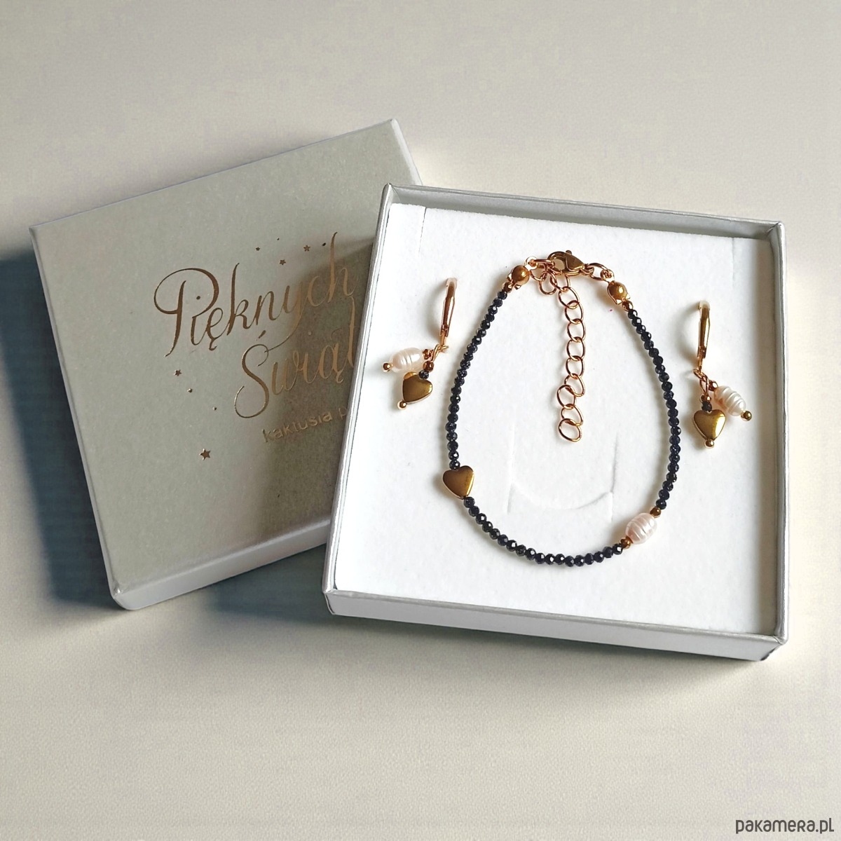 KOMPLET noc kairu i perła : delikatny, uroczy komplet na prezent