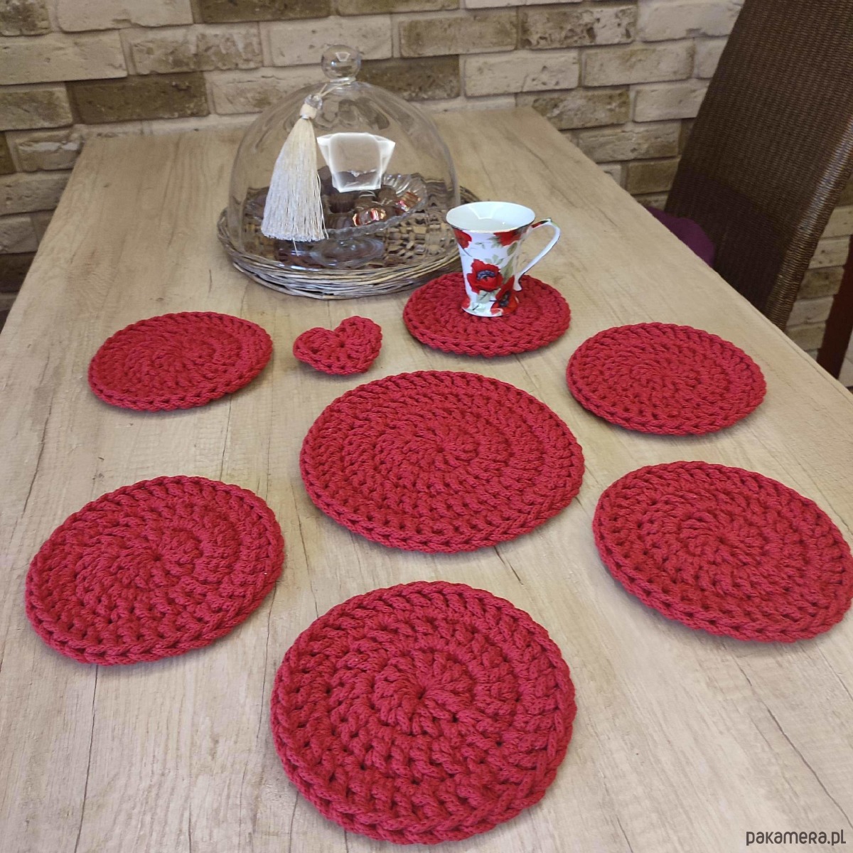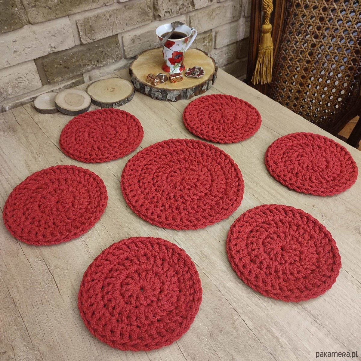 Komplet podkładek - 6szt o średnicy 17cm i 1szt średnica 22cm, wykonany metodą szydełkowania z polskiego sznurka bawełnianego 5mm.