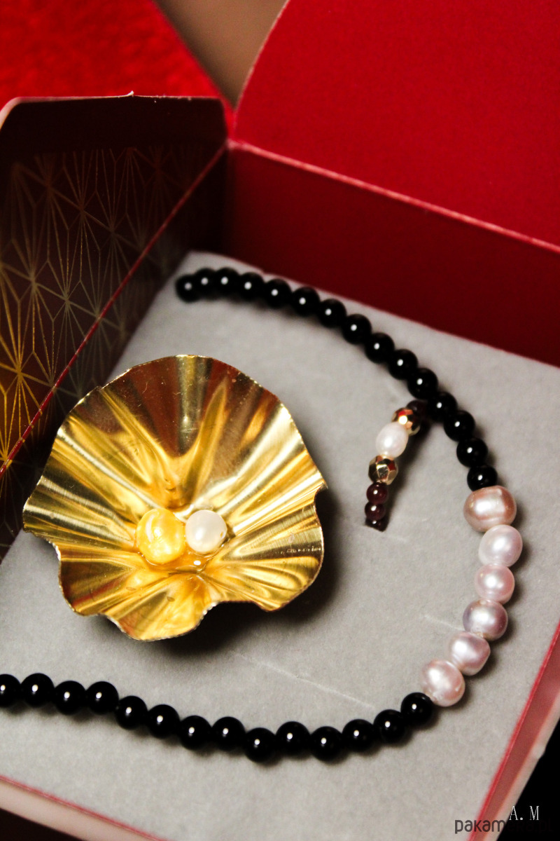 - naszyjnika z naturalnego Onyksu oraz pereł hodowlanych o lekko surowym charakterze i bogactwie odcieni.