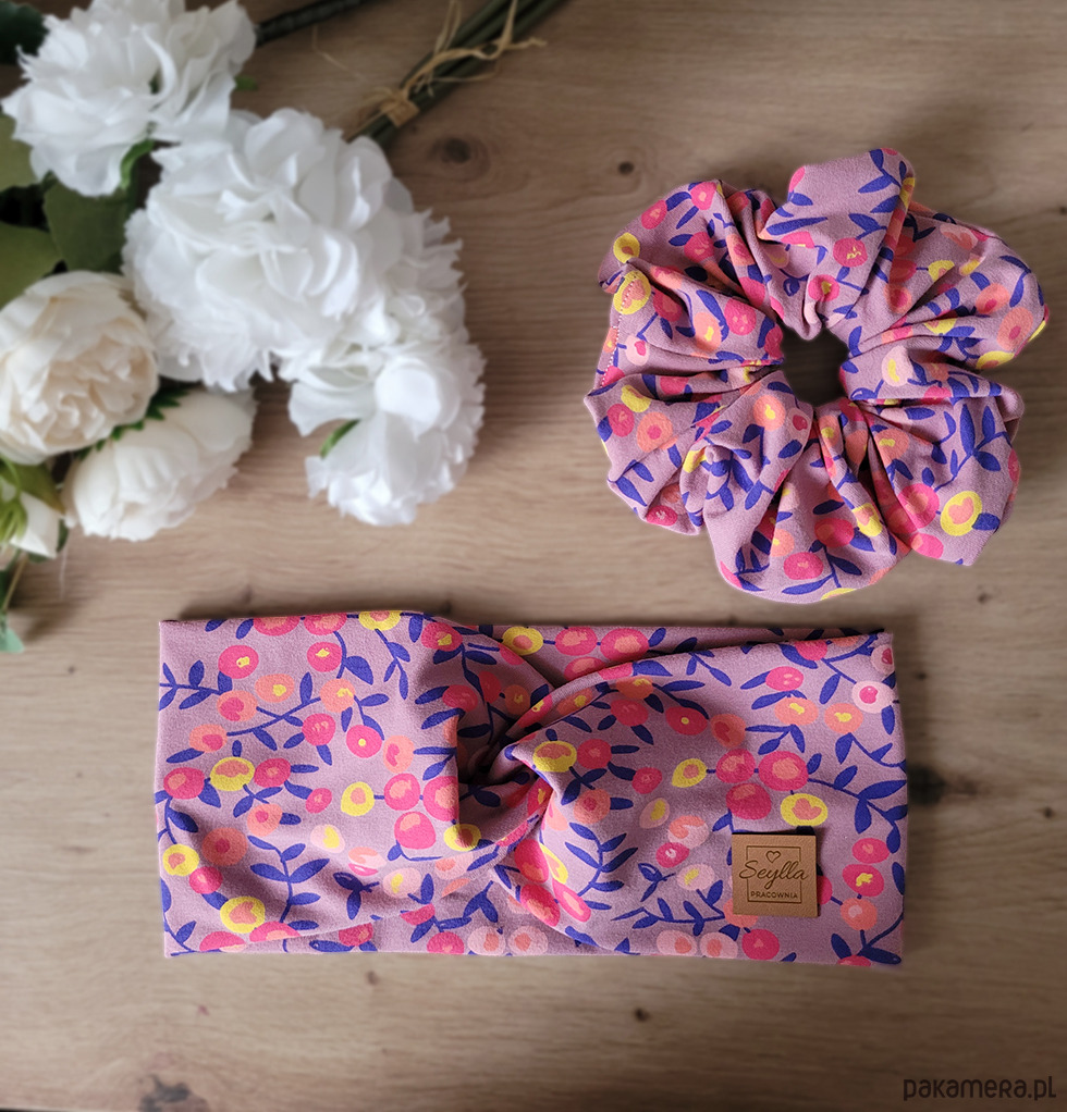 W komplecie jest opaska zaplatana oraz gumeczka Scrunchie z kolekcji Maxi.