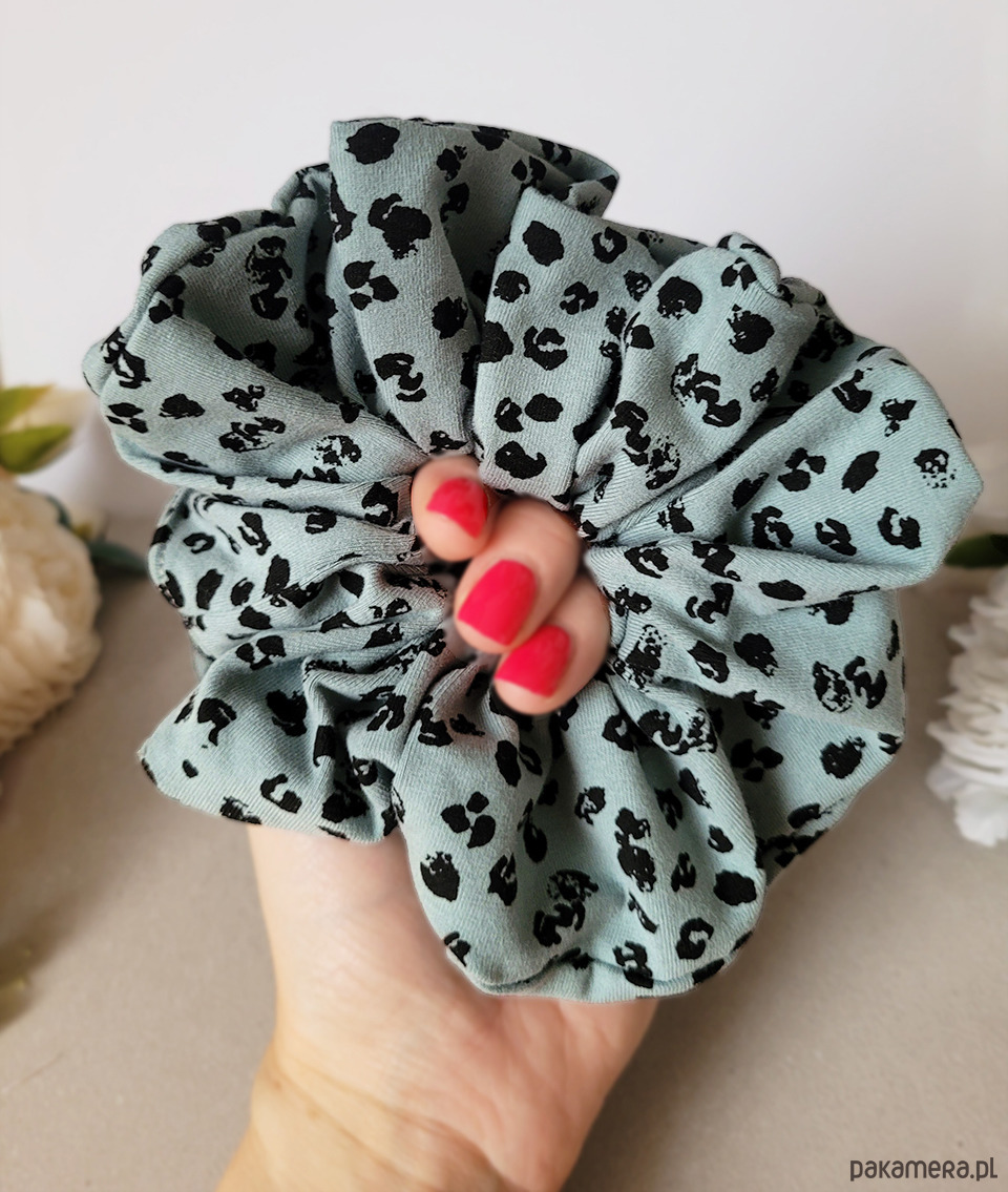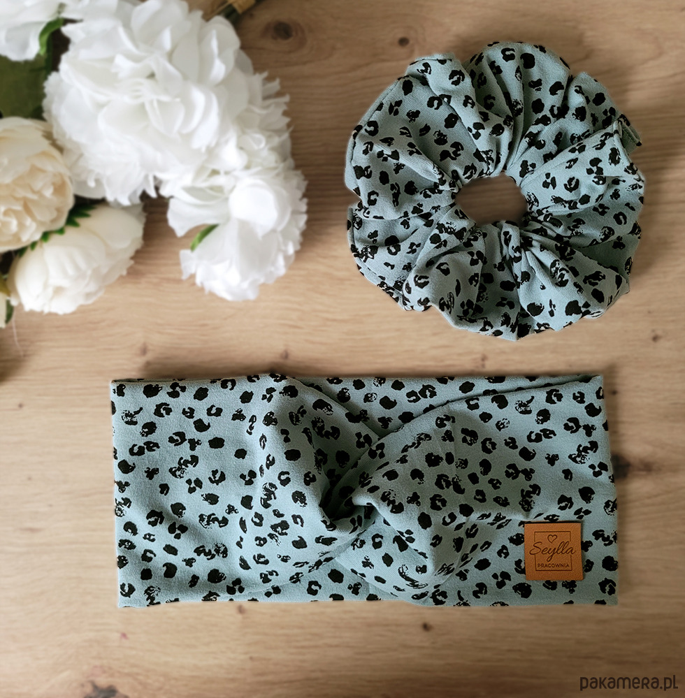 Komplet opaska + gumka scrunchie panterka niebieski przydymiony