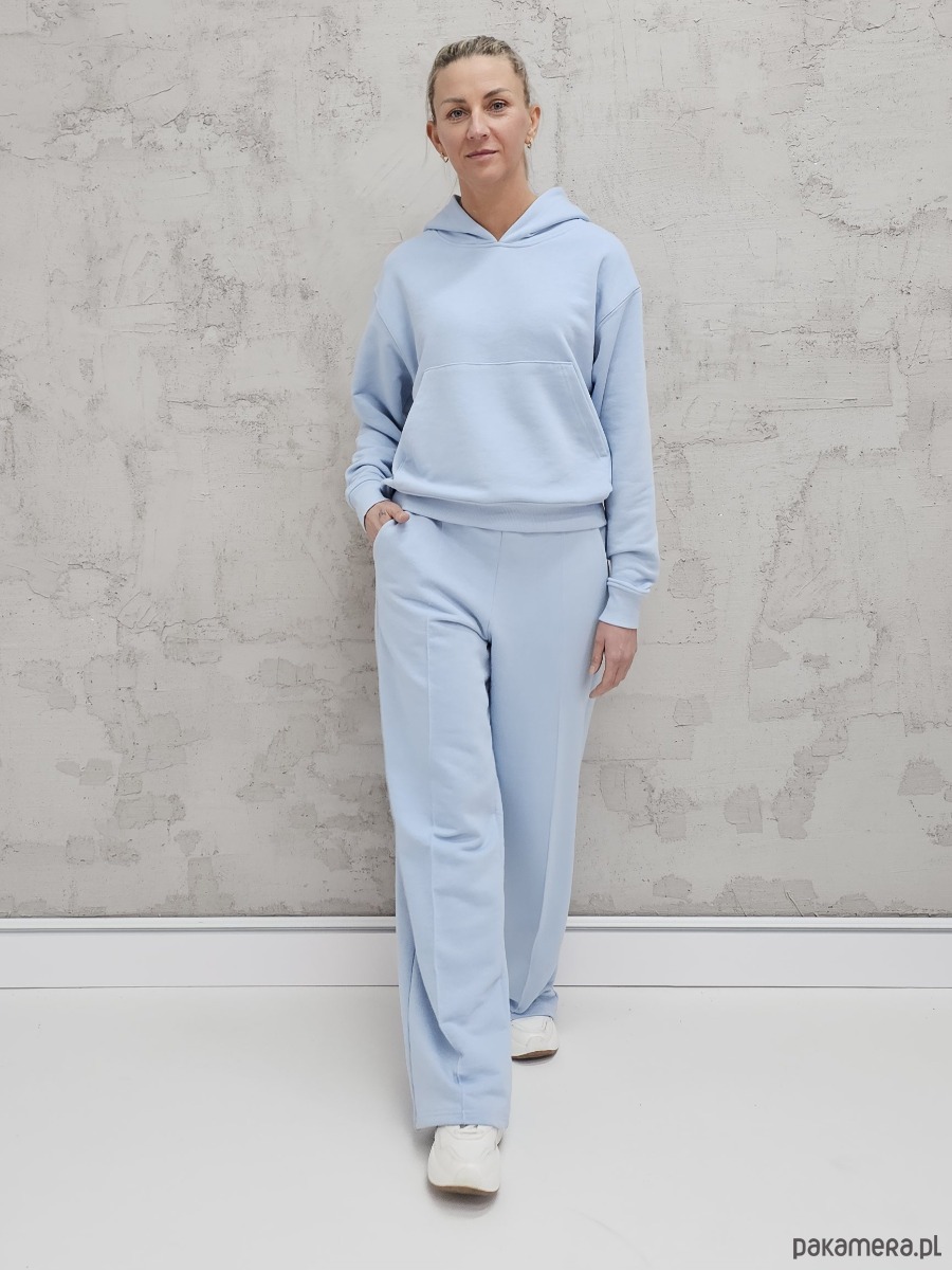 Komplet oversized kangurka i szerokie spodnie wide leg Baby Blue