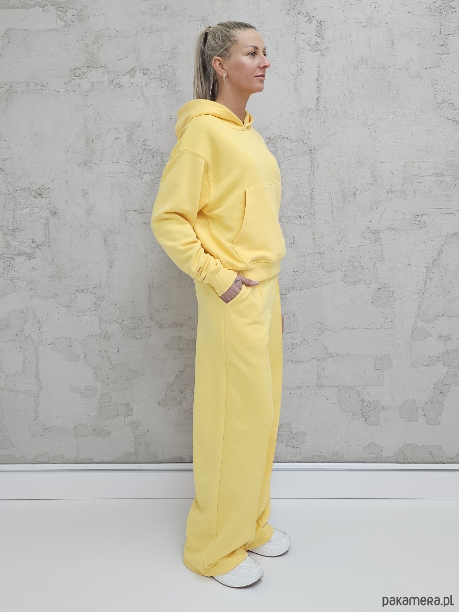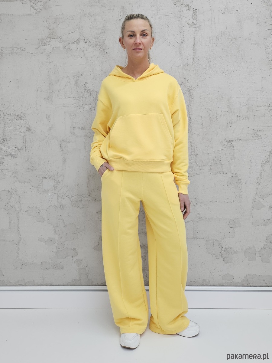 Komplet oversized kangurka i szerokie spodnie wide leg Butter Yellow