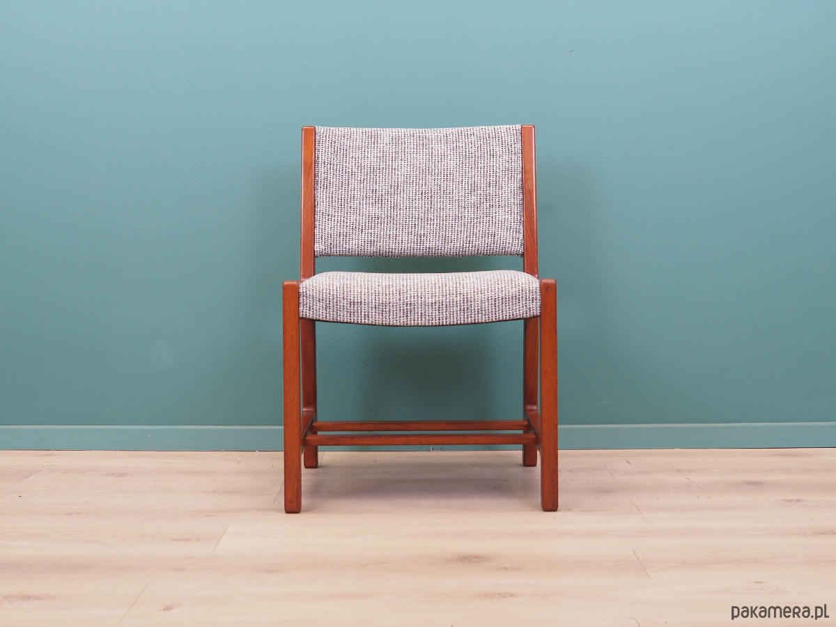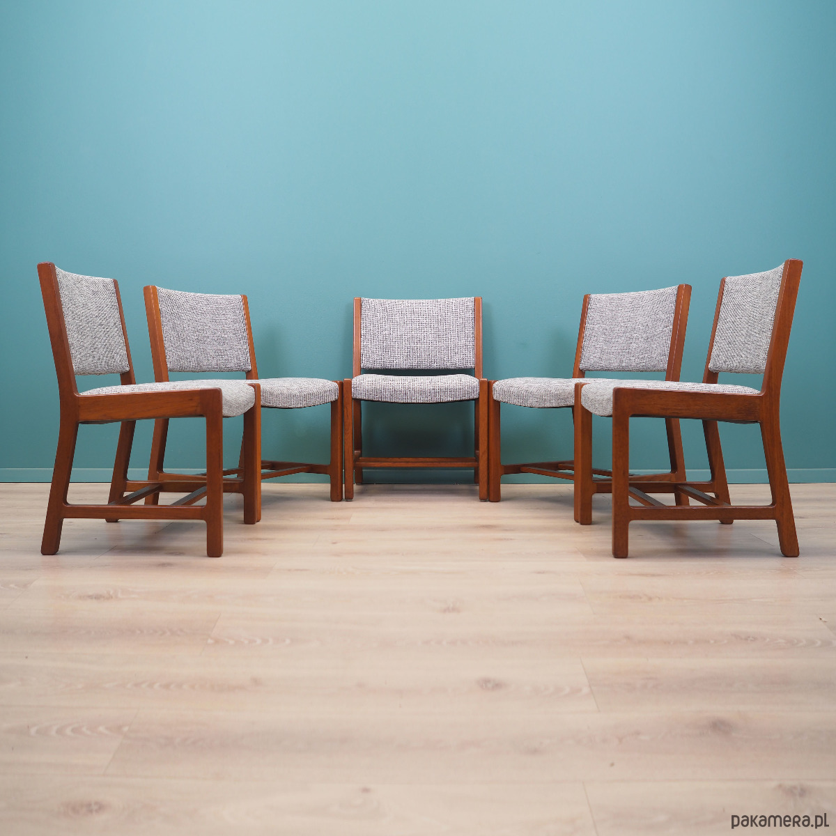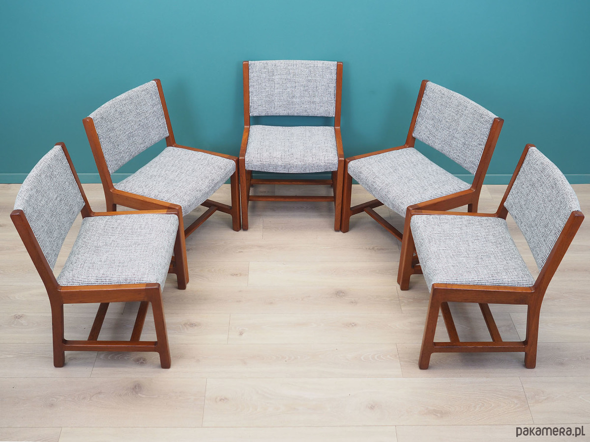 Komplet pięciu krzeseł wykonany został w latach 70-tych, produkcja duńska.