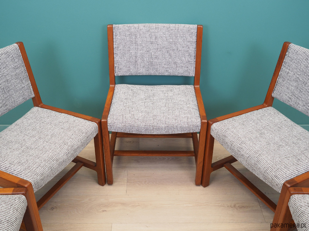 Komplet pięciu krzeseł tekowych, duński design, lata 70, produkcja: Dania