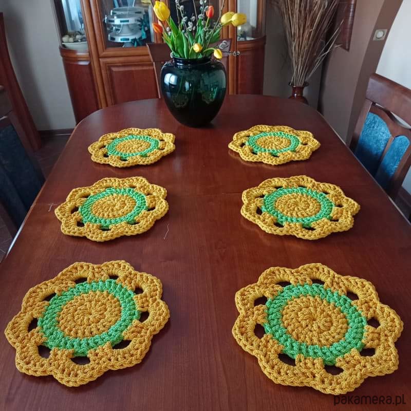 Komplet podkładek - 6szt o średnicy 30cm, wykonany metodą szydełkowania z polskiego sznurka bawełnianego 5mm.