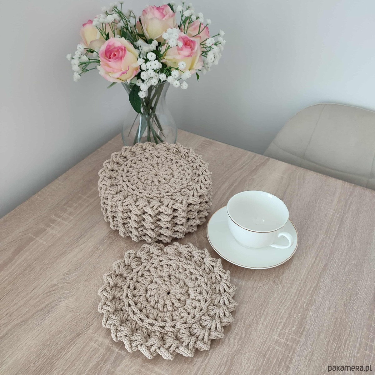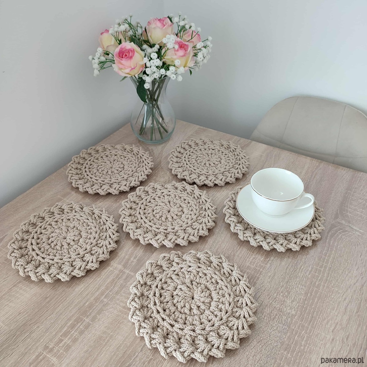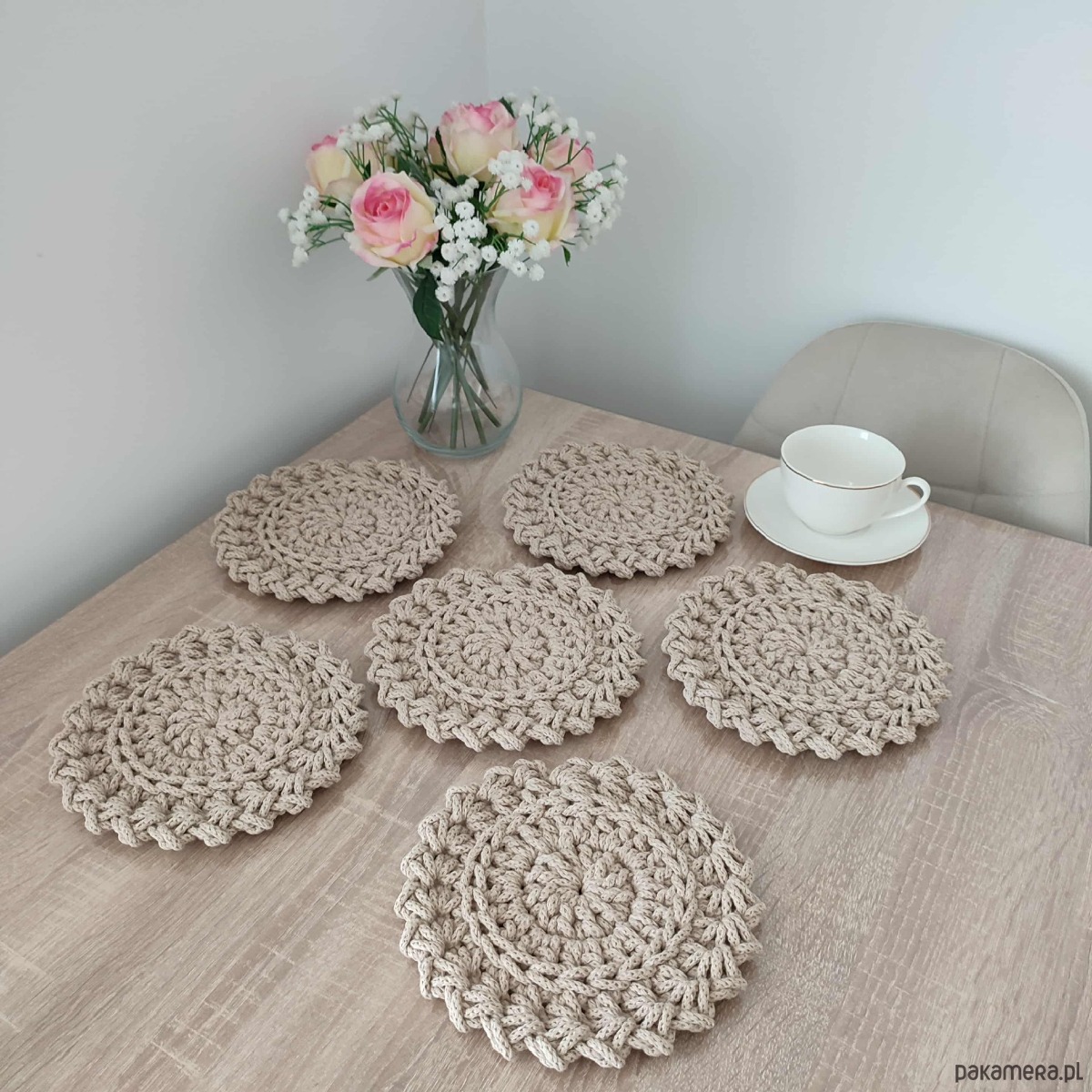 Komplet podkładek szydełkowych okrągłych ze sznurka 6szt - 20cm