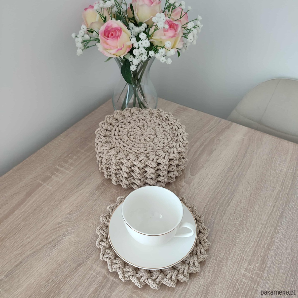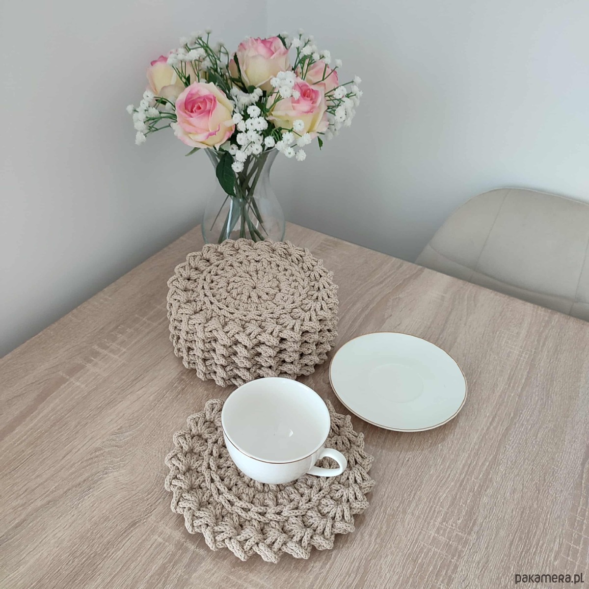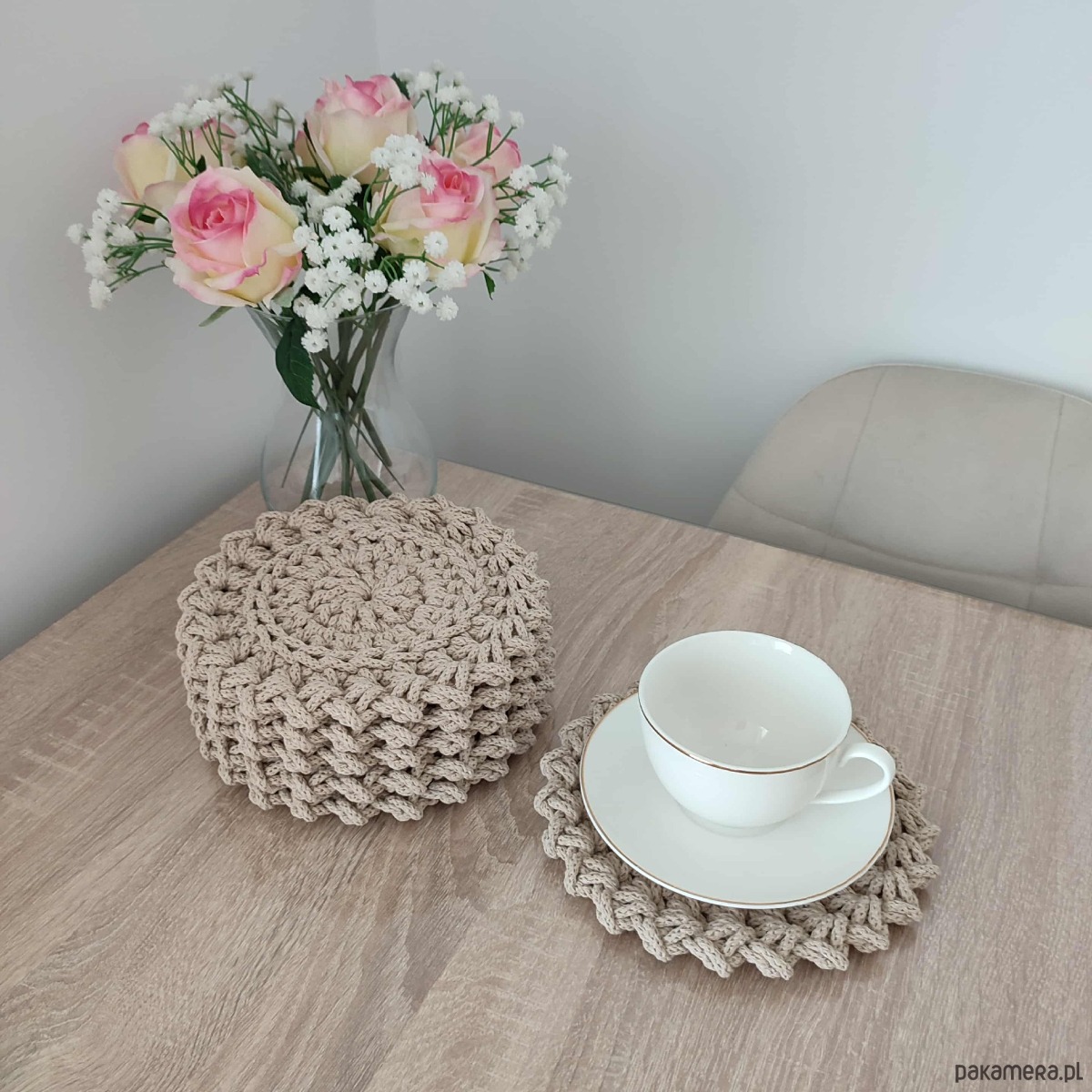 Komplet podkładek szydełkowych okrągłych ze sznurka 6szt - 20cm