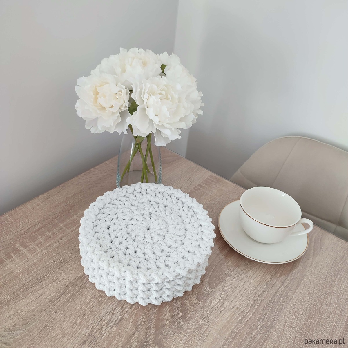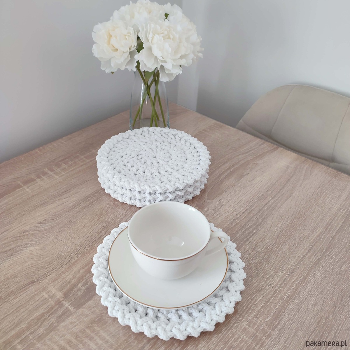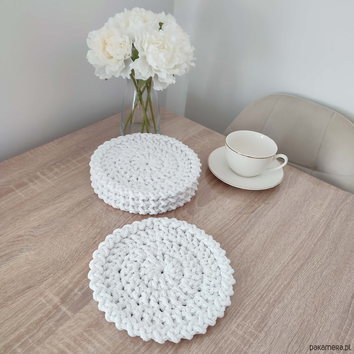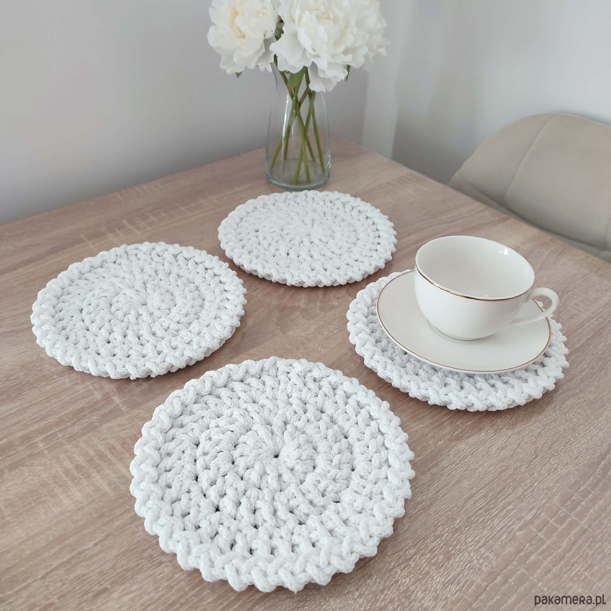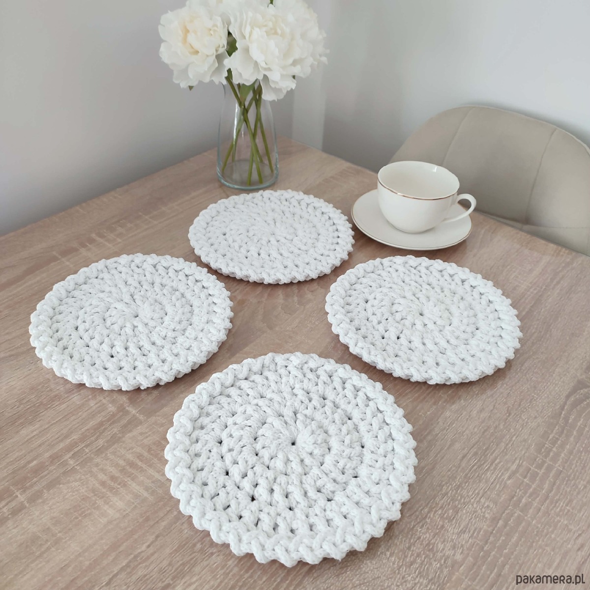 Komplet podkładek szydełkowych pod kubki 4szt-20cm