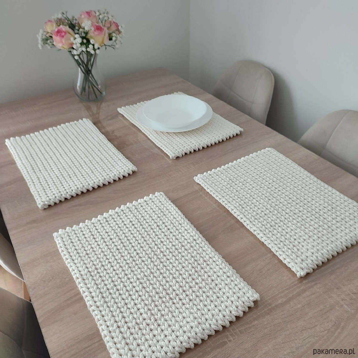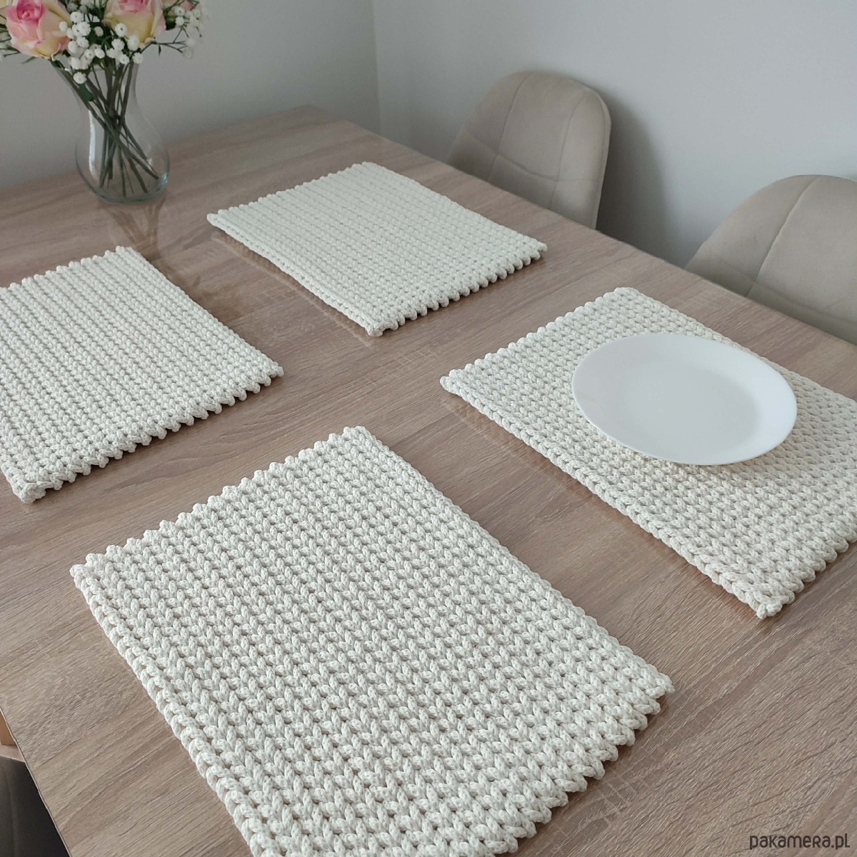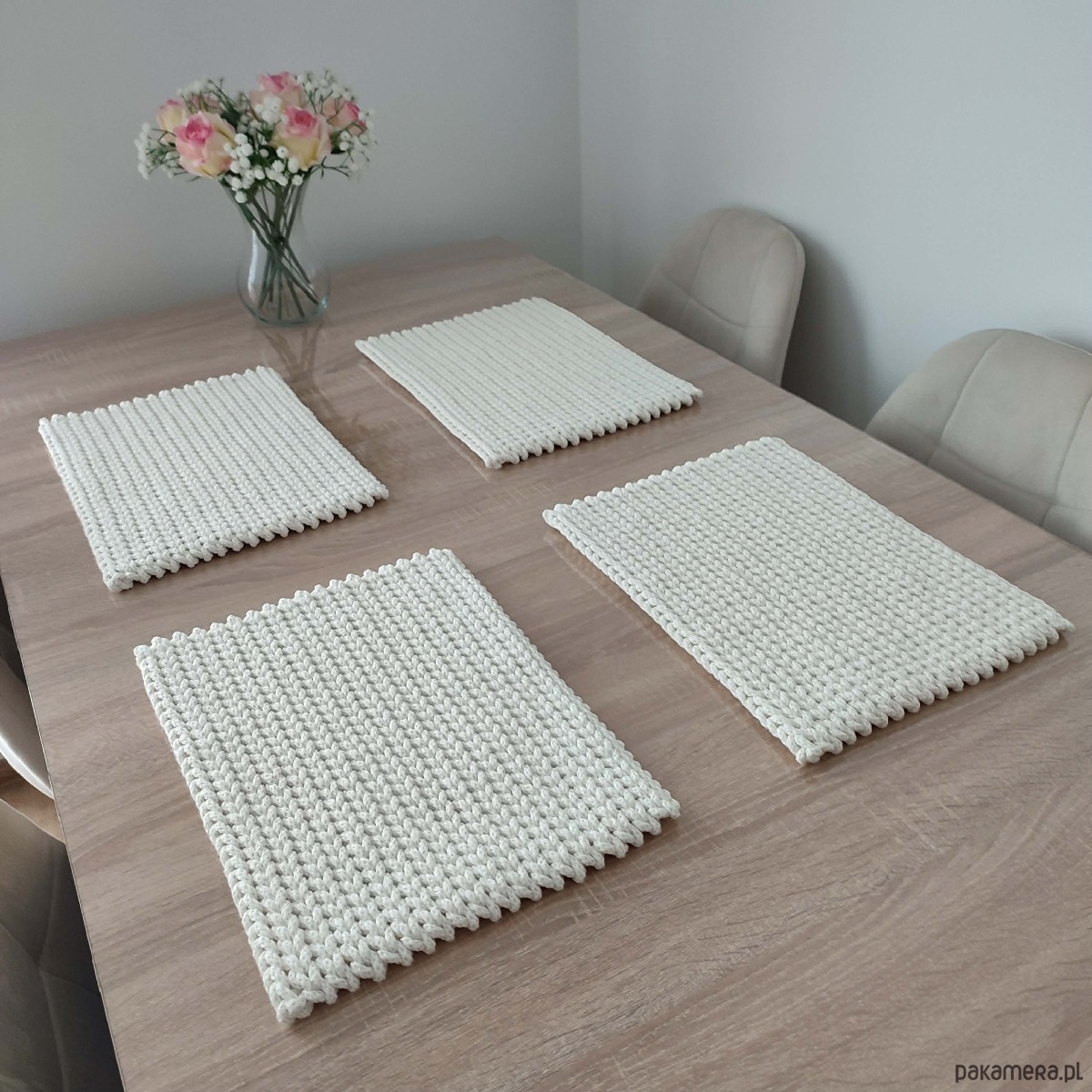 Komplet podkładek - 4 sztuki o wymiarach 25cmx35cm, wykonany metodą szydełkowania z polskiego sznurka bawełnianego 5mm.