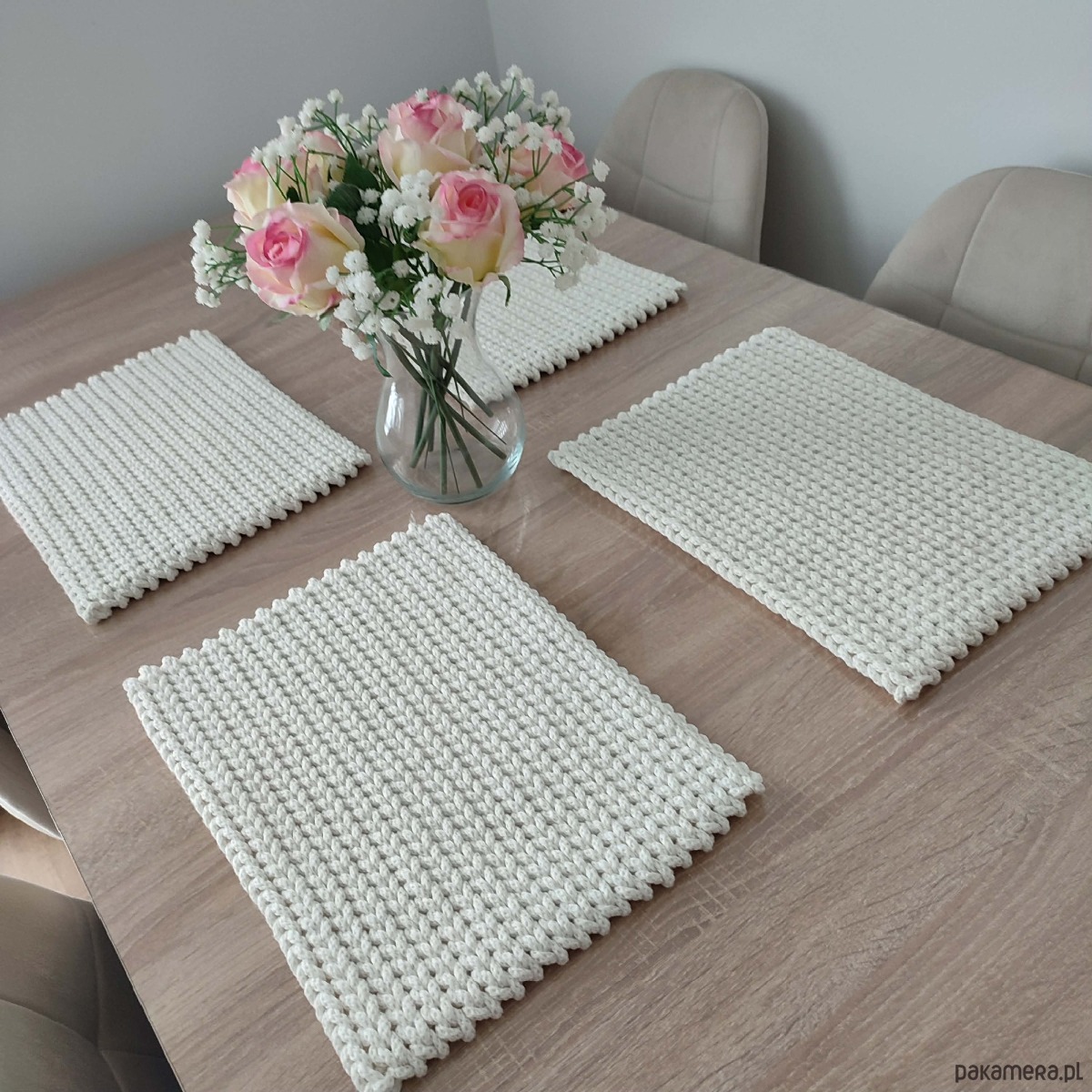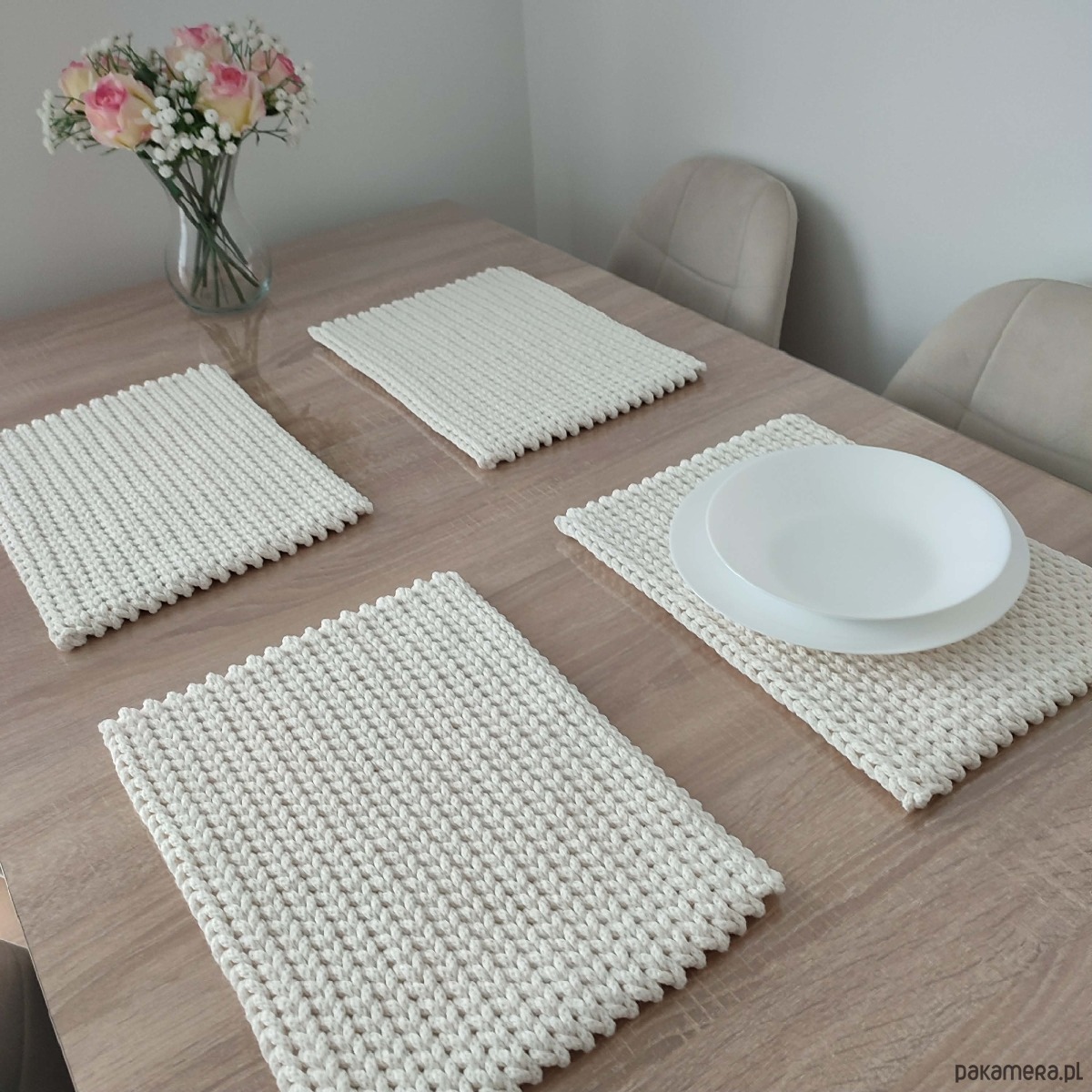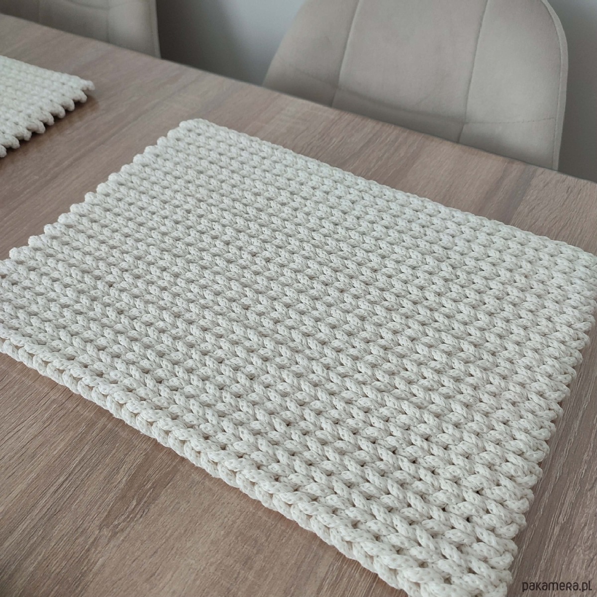 Komplet podkładek - 4 sztuki o wymiarach 25cmx35cm, wykonany metodą szydełkowania z polskiego sznurka bawełnianego 5mm.