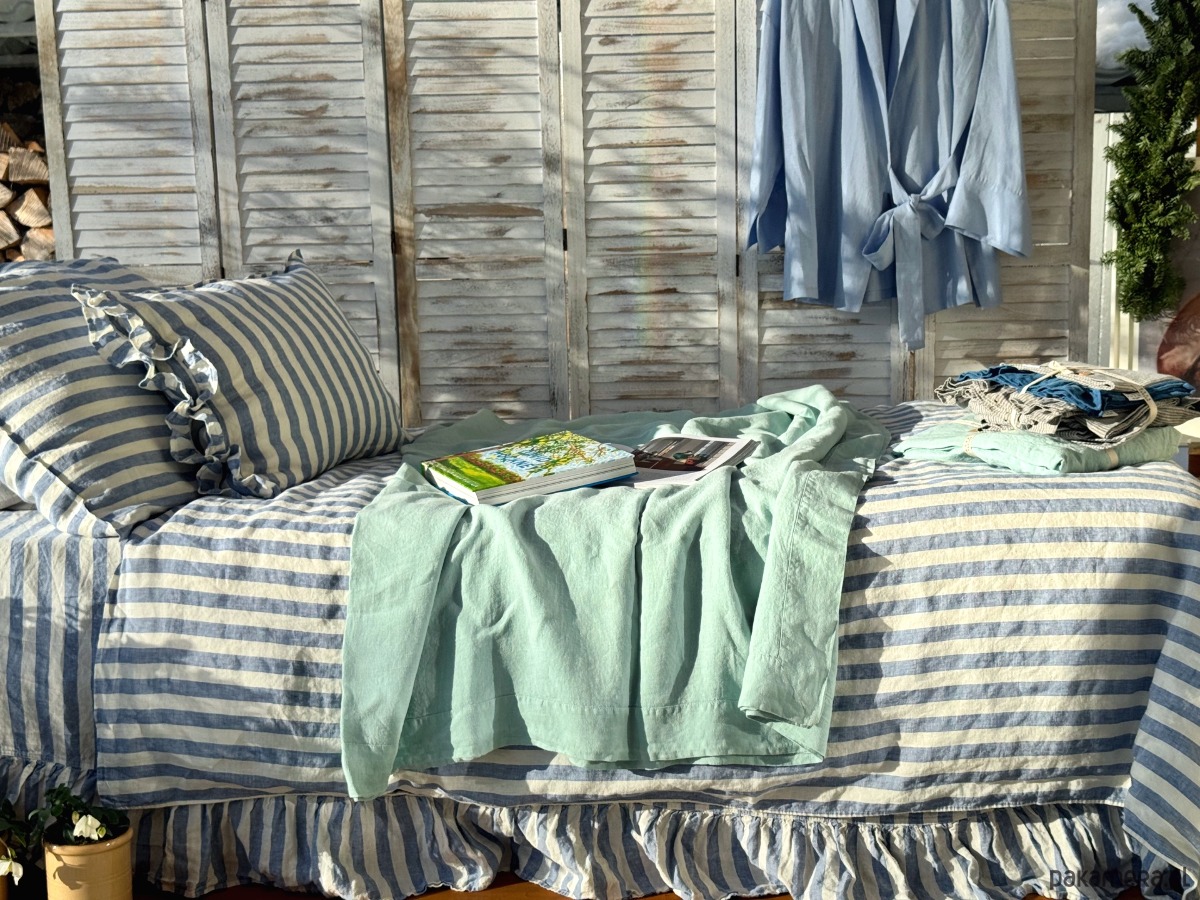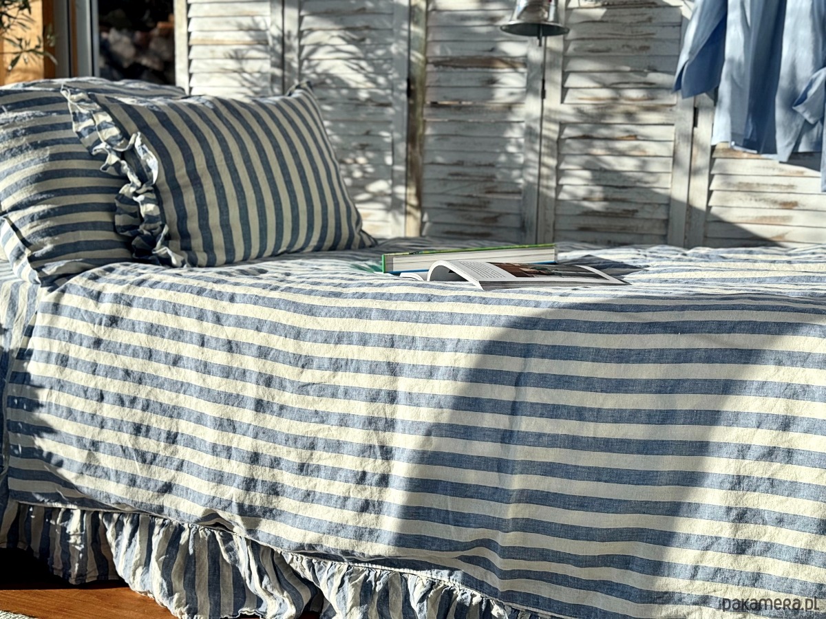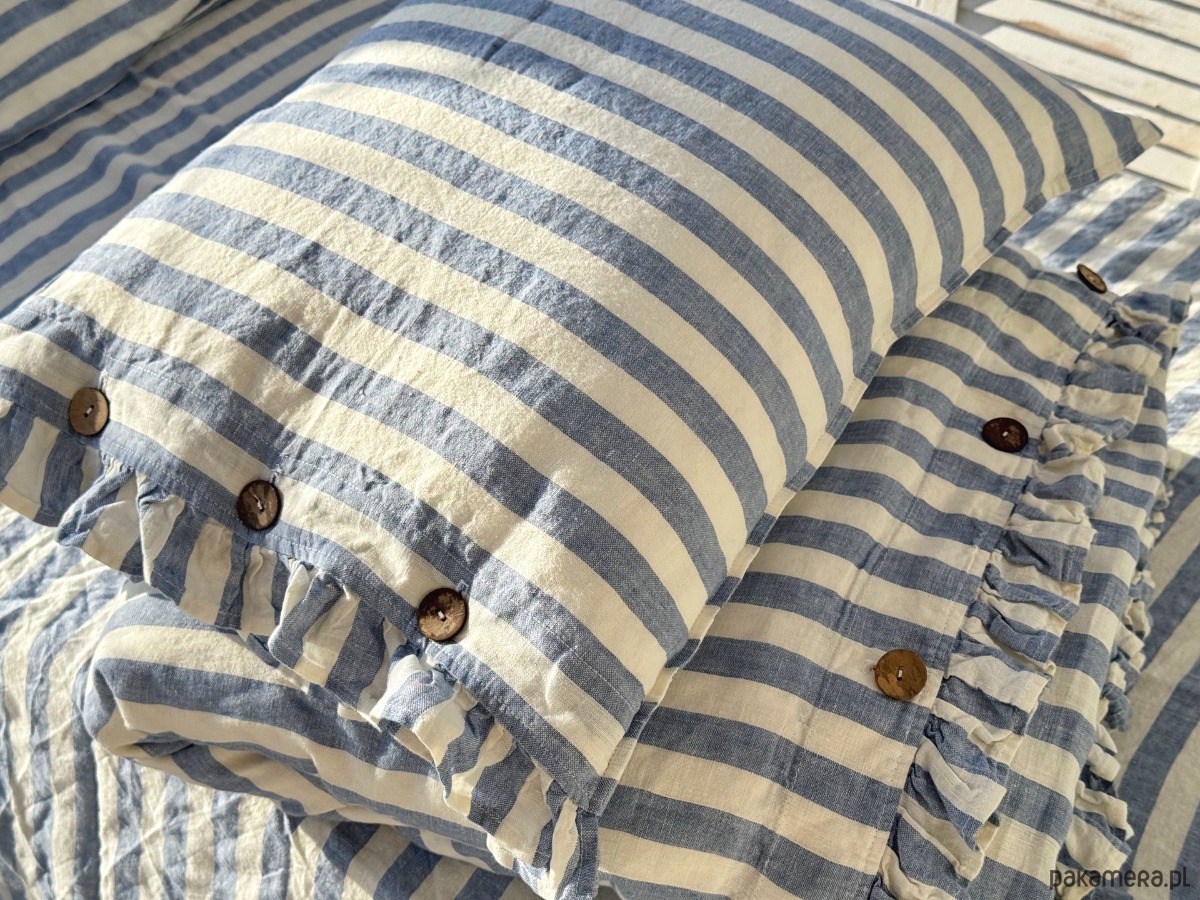 Poszewka na kołdrę z lnu tkanego w niebieskie i białe pasy