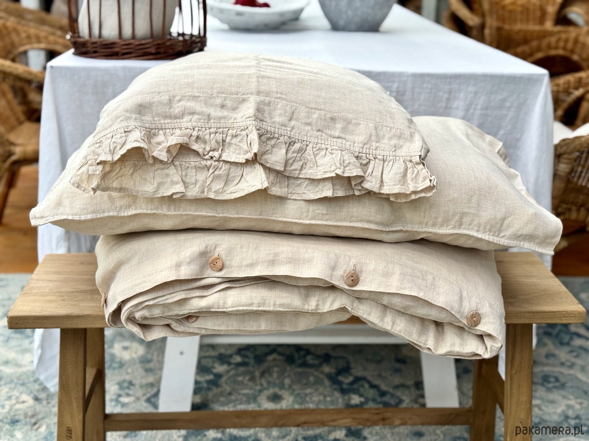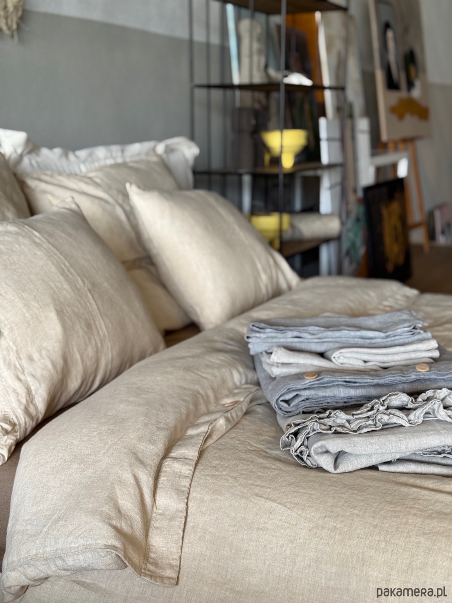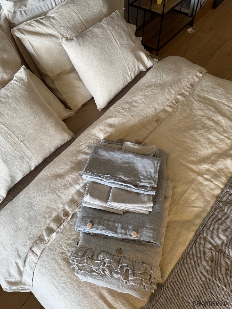 Nasze produkty powstają ze 100 % europejskiego lnu. Ten len ma gramaturę 190 g i jest zmiękczana metodą prewashed.