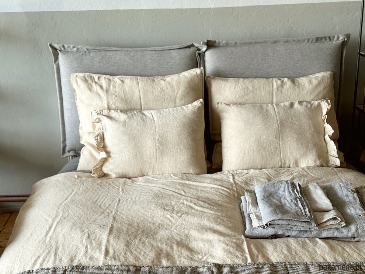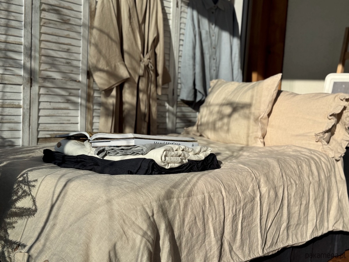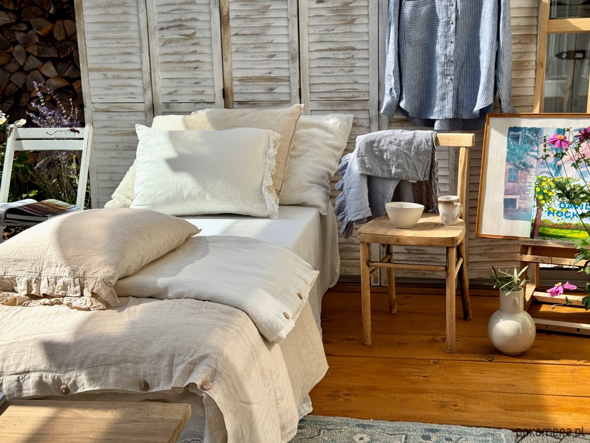 Nasze produkty powstają ze 100 % europejskiego lnu. Ten len ma gramaturę 190 g i jest zmiękczana metodą prewashed.