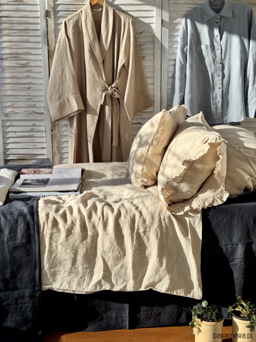 Naturalne właściwości i pochodzenie tkaniny sprawiają, iż jest ona idealnym wyborem na bieliznę pościelową. Tkanina lniana posiada wiele wyjątkowych cech, które pomagają stworzyć idealne warunki dla naszego snu. W lnianej pościeli nasza skóra może swobodnie oddychać. Len świetnie absorbuje wilgoć i hamuje rozwój bakterii i grzybów . Doskonale nadaje się na pościel całoroczną. Jest wyjątkowo trwały i łatwy w pielęgnacji. Len to także niezwykła faktura, subtelne marszczenia i estetyka.