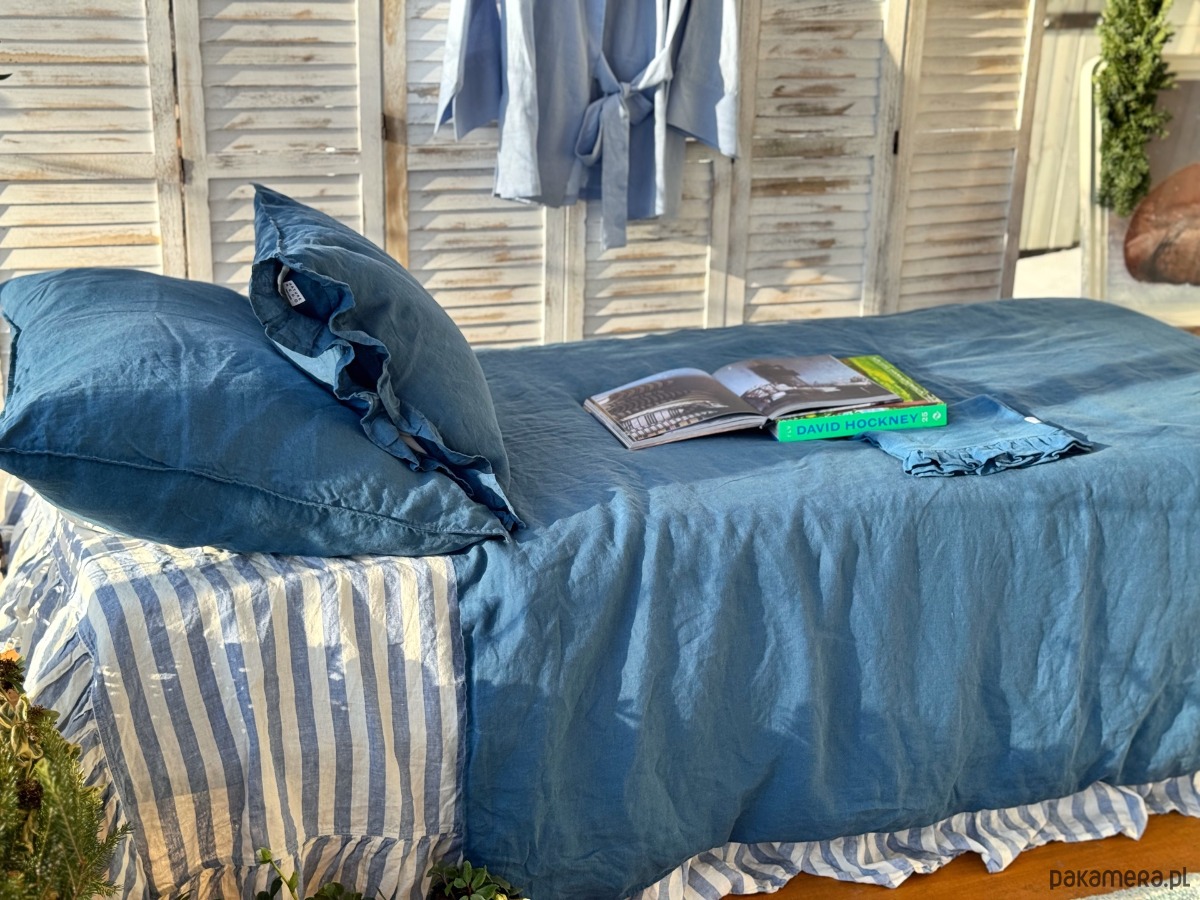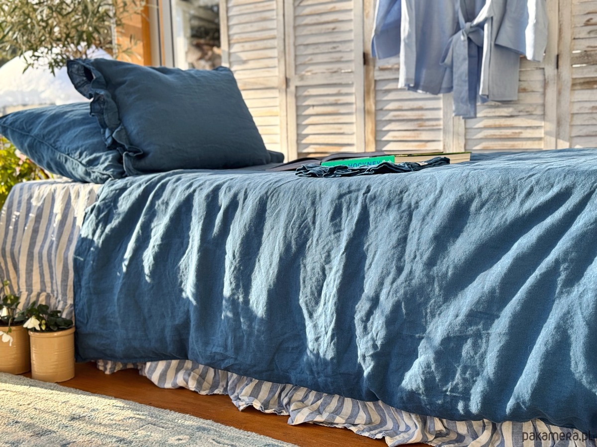 Poszewka na kołdrę z lnu utkanego w kolorze denim blue.