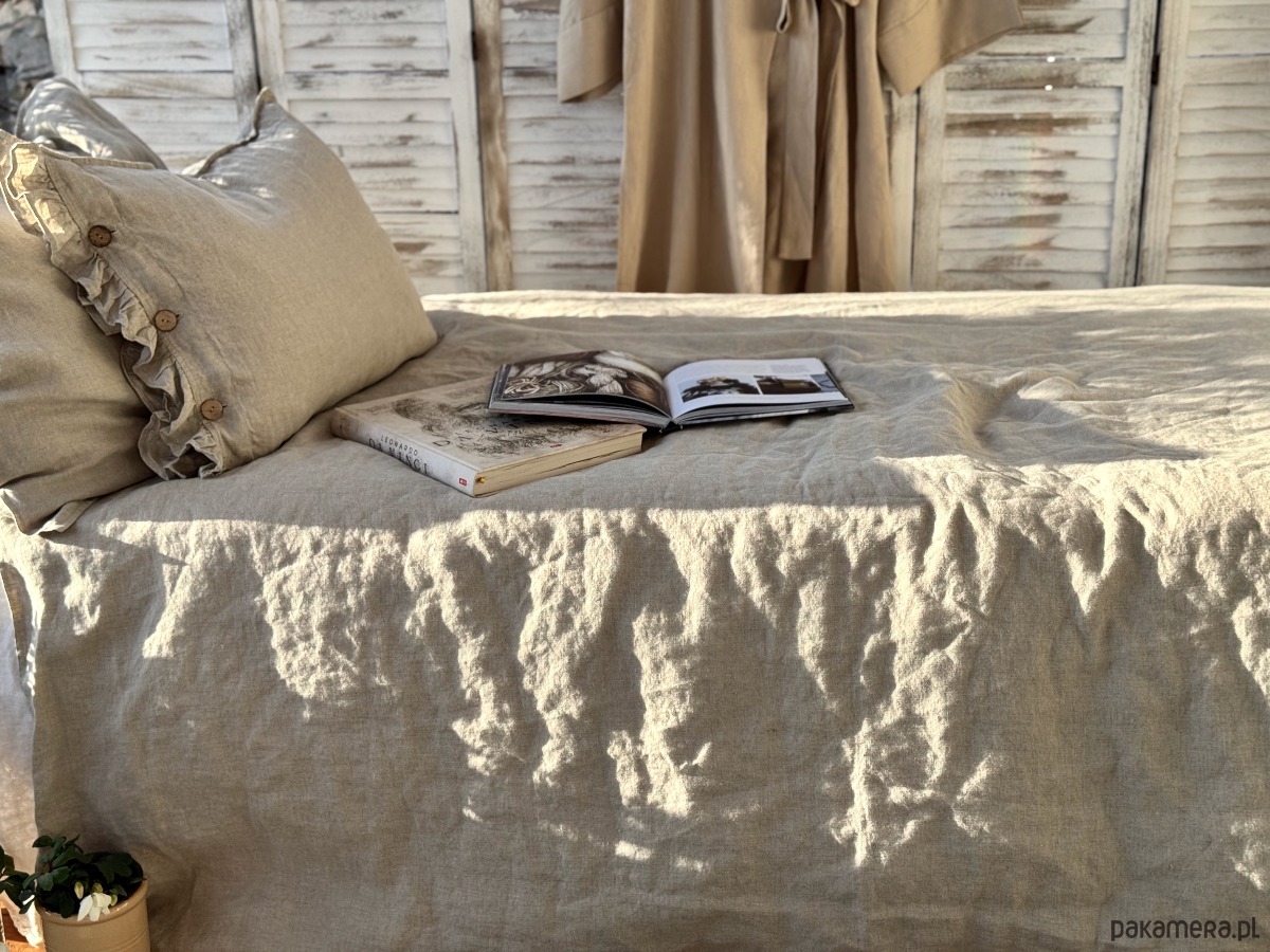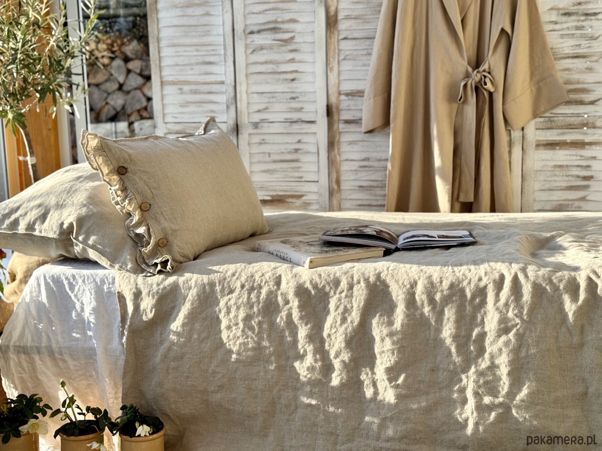 Naturalne właściwości i pochodzenie tkaniny sprawiają, iż jest ona idealnym wyborem na bieliznę pościelową. Tkanina lniana posiada wiele wyjątkowych cech, które pomagają stworzyć idealne warunki dla naszego snu. W lnianej pościeli nasza skóra może swobodnie oddychać. Len świetnie absorbuje wilgoć i hamuje rozwój bakterii i grzybów . Doskonale nadaje się na pościel całoroczną. Jest wyjątkowo trwały i łatwy w pielęgnacji. Len to także niezwykła faktura, subtelne marszczenia i estetyka.