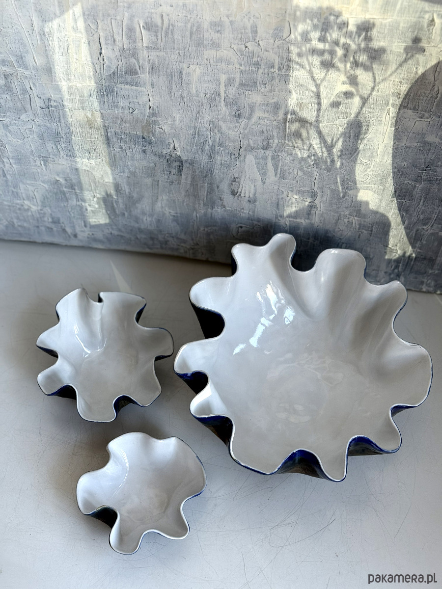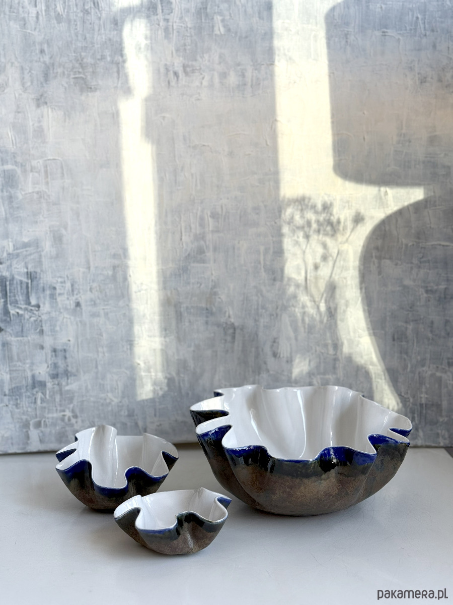 Komplet ręcznie lepione misy ceramiczne Kobalt i Imbir