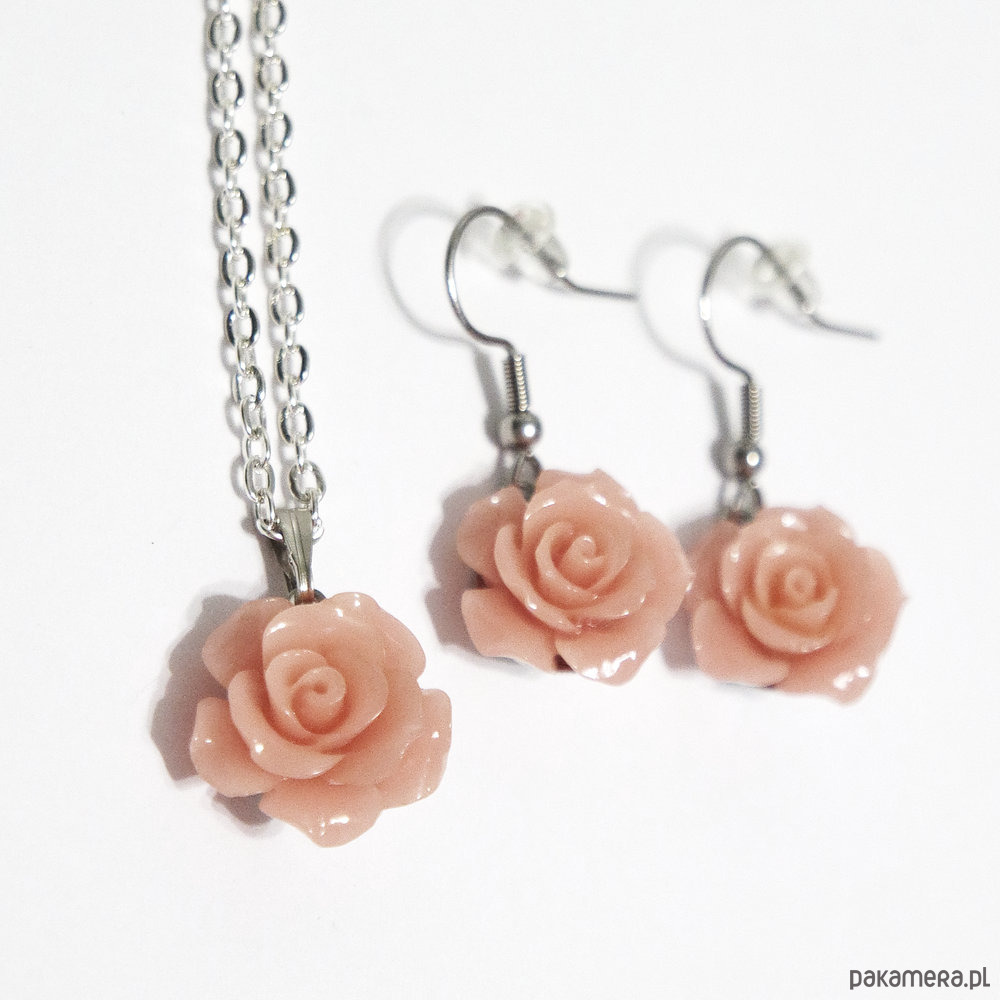 Komplet - Róża pudrowy róż - koral